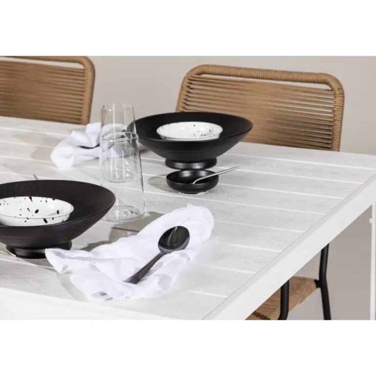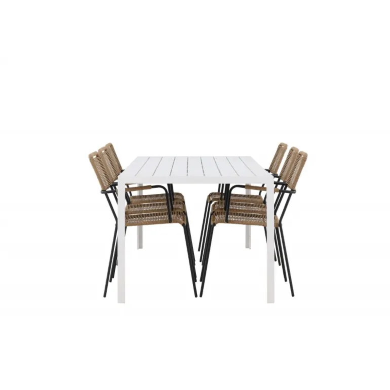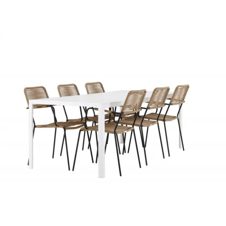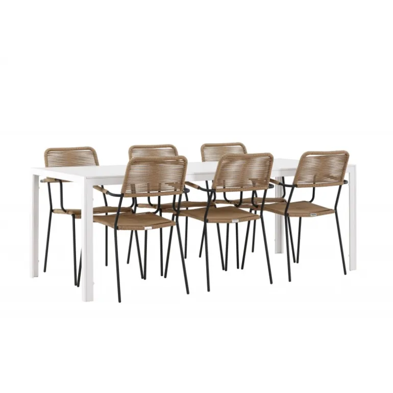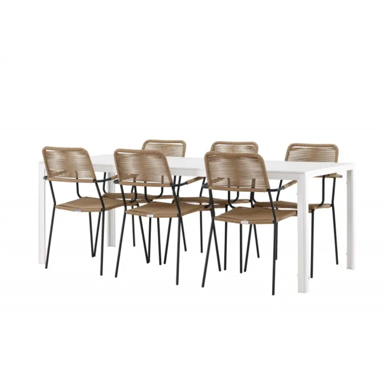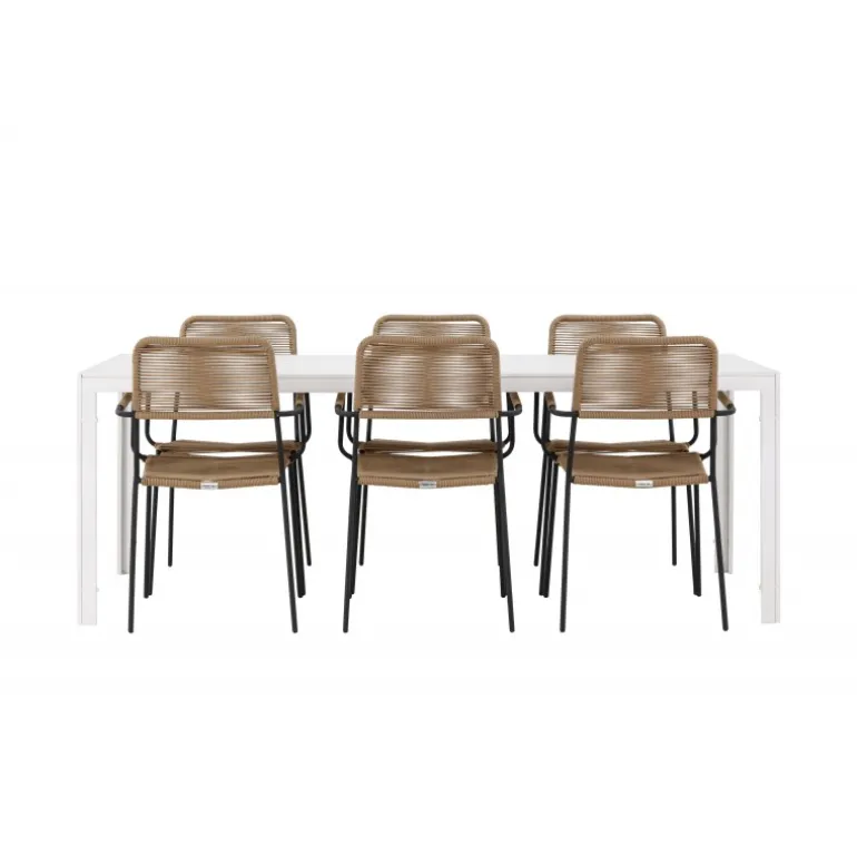 Oplev den perfekte kombination af rustik charme og trend-sættende design med vores eksklusive Loungesæt – Havemøbelsæt, komplet med seks elegante Lindos stole og det slanke Break bord. Dette ensemble er skabt til at fremkalde en varm følelse og skabe en indbydende atmosfære til sammenkomster med venner og familie. Lindos stolene, med deres brune reb sæder og sorte stålrammer, tilbyder både komfort og holdbarhed. Deres naturlige udseende tilføjer et rustikt touch til din udendørs plads. Break bordet fungerer som det perfekte midtpunkt for din udendørs spiseoplevelse, med en hvid aintwood bordplade og en aluminiumsbase, der udstråler moderne elegance. Med generøse dimensioner på 205×75 cm, er det komfortabelt til at rumme seks personer til hyggelige udendørs sammenkomster. Dette Loungesæt – Havemøbelsæt er mere end blot et funktionelt udendørs møbel; det er et symbol på fællesskab og sammenhold. Skab minder og nyd hvert øjeblik med vores varme og trend-sættende Lindos og Break Loungesæt – Havemøbelsæt.