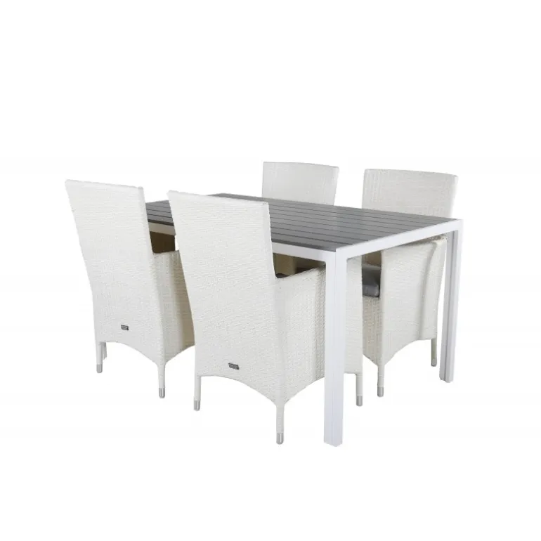 Spisebord Break i et stilfuldt og enkelt design. Vores populære spisestole Malin medfølger til bordet. Her får du en kombination, der skaber en varm, naturlig og indbydende følelse til udendørsområdet eller altanen. Gør dig klar til udendørssæsonen med os!