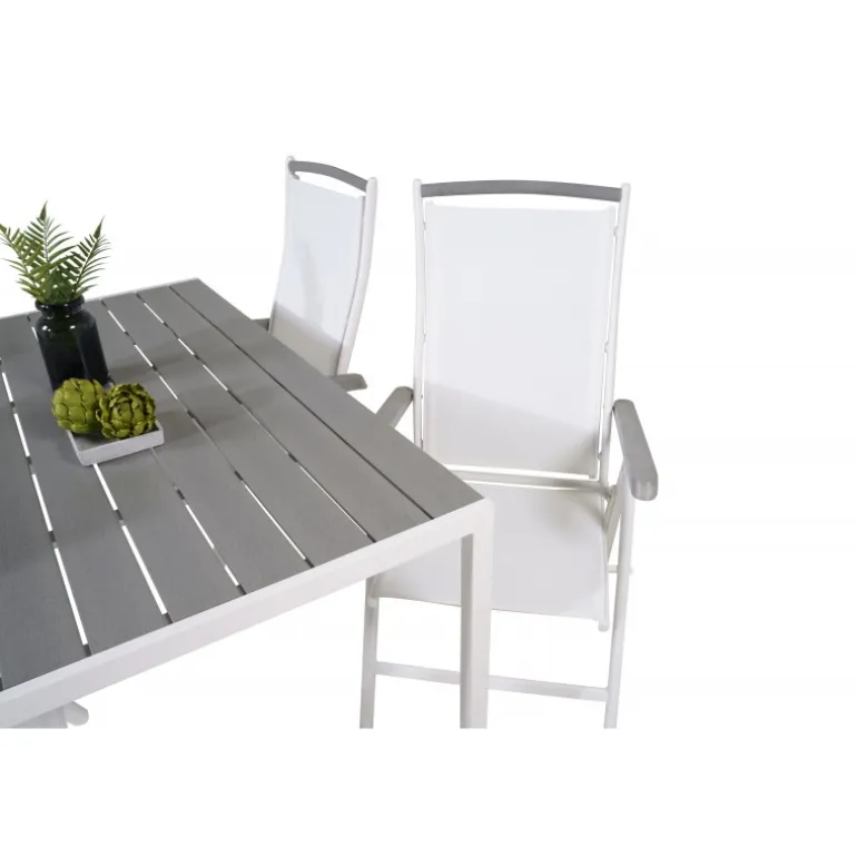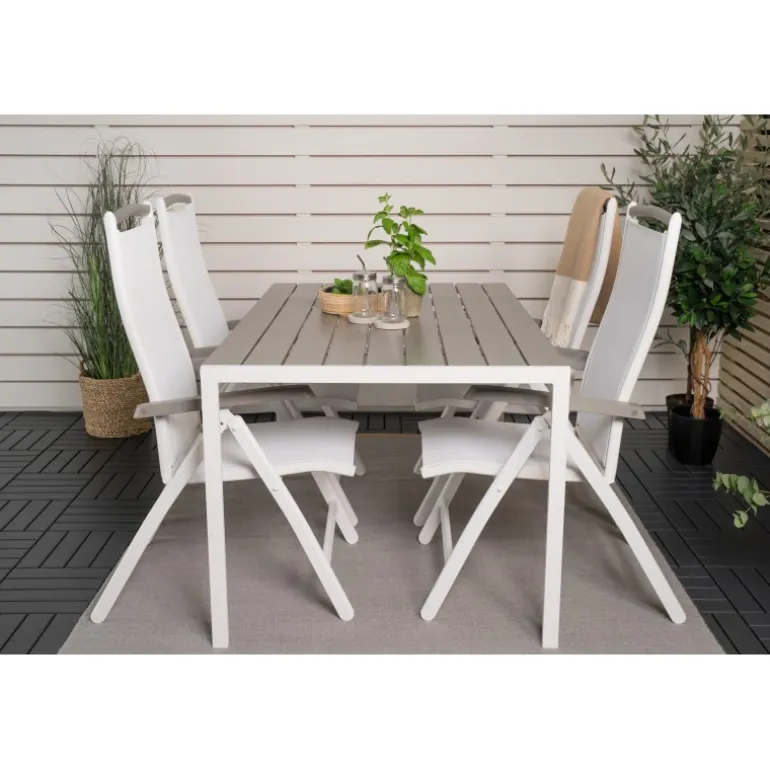 Albany, vores populære spisebordsstole med foldbar ryglæn i perfekt kombination med vores spisebord Break i klassisk stil. Lad denne statelige Loungesæt – Havemøbelsæt i tidløse farver pryde din terrasse og forlænge sommerens middagstunder!