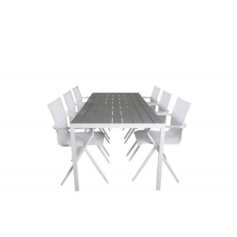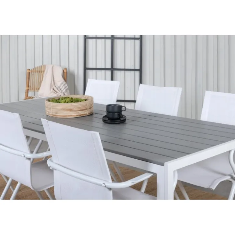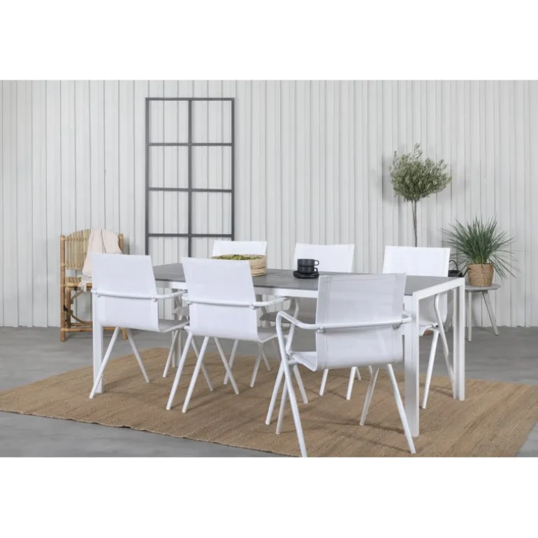 Vores populære spisebordsstole Alina i moderne design og holdbar kvalitet. Her sammen med det grå spisebord Break. Indret din terrasse med en komfortabel og stilfuld Loungesæt – Havemøbelsæt, der skaber en hyggelig familieatmosfære! Holdbar og stilfuld løsning til dit udendørsområde.