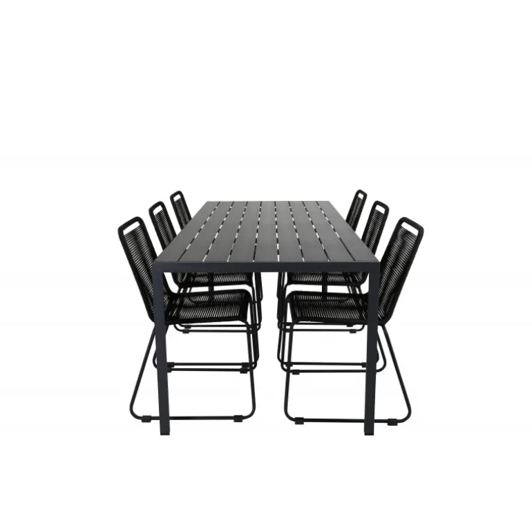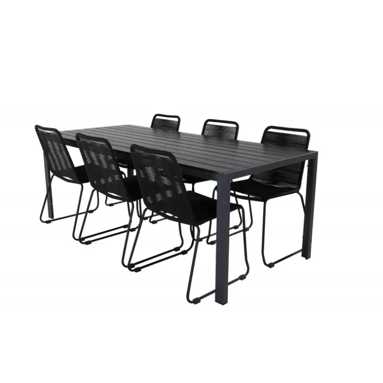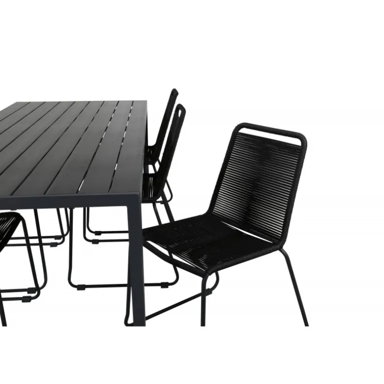 Klassisk Loungesæt – Havemøbelsæt med en indbydende følelse, der passer til de fleste terrasser! Spisebordet Break sammen med sorte spisebordsstole fra Lindos-serien er perfekt til dem, der ønsker at skabe en trendy og tidløs atmosfære. Forbered dig på sommerens dejlige nætter!