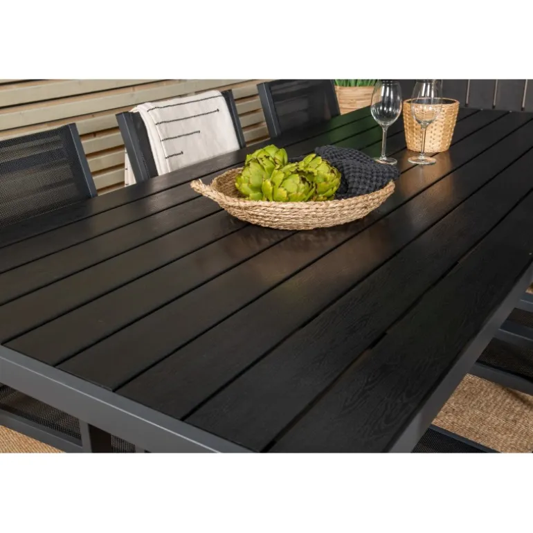 Break, moderne og pænt spisebord – her sammen med spiseborde i Copacabana serien. Skab noget elegant og socialt med plads til god mad og hyggeligt samvær! Perfekt til din udendørs indretning. Fremstillet i aintwood og aluminium for holdbarhed og stil. Bemærk, at ainwood er følsomt overfor høje temperaturer. Sørg for korrekt vedligeholdelse for at forlænge møblets levetid.