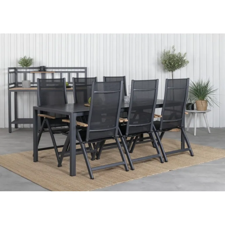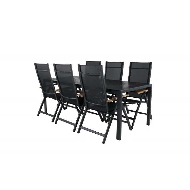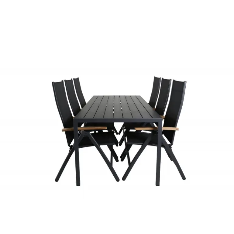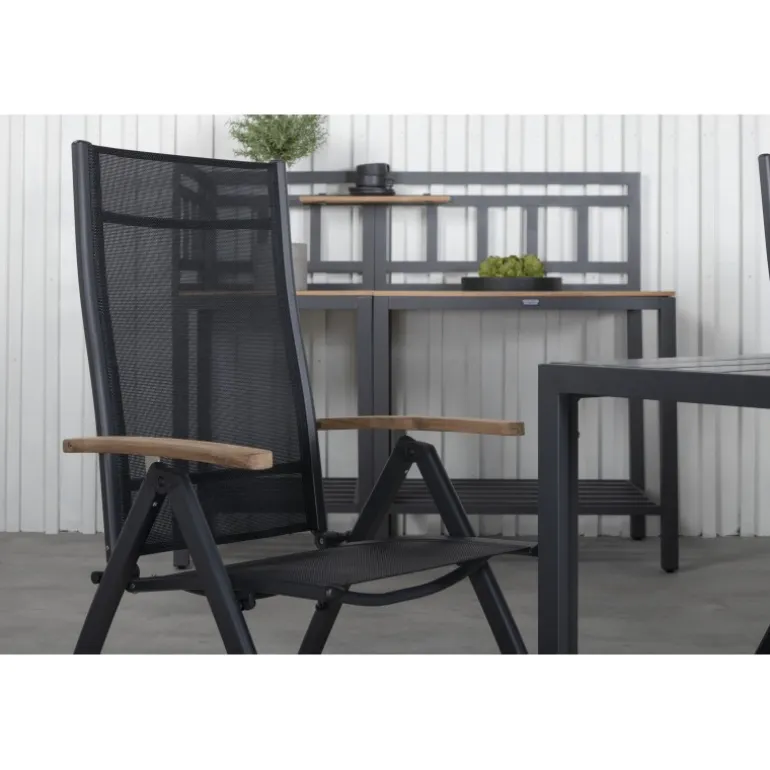 Vores populære spisebordsstole i Panama-serien er foldbare for optimal komfort og har dekorative armlæn i træ. Her i en lækker kombination med spisebordet Break. Bliv klar til sommerens fremragende aftener med en behagelig spisestue i en frisk sort farve!