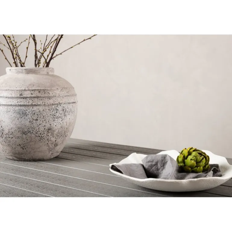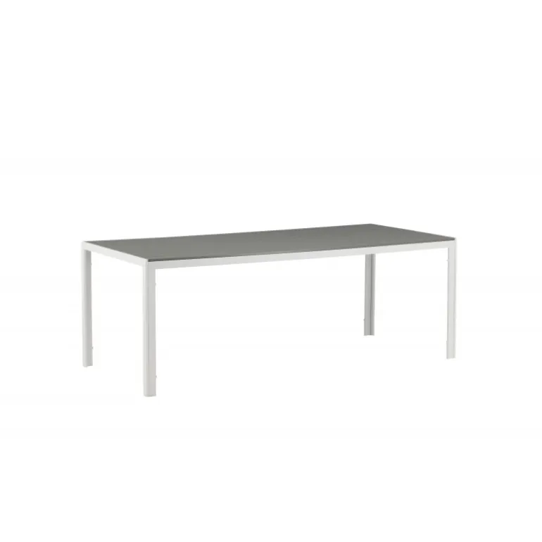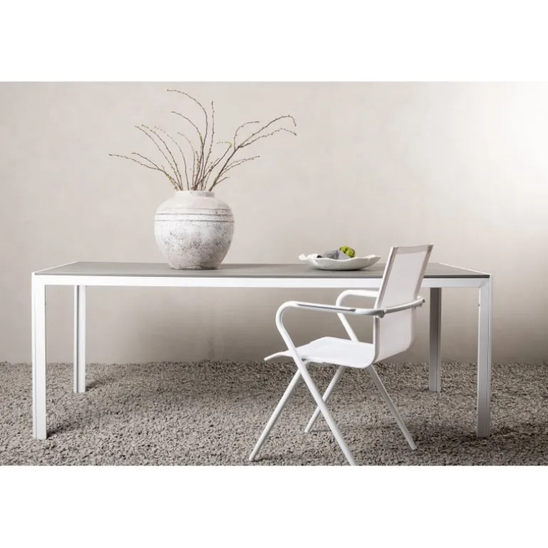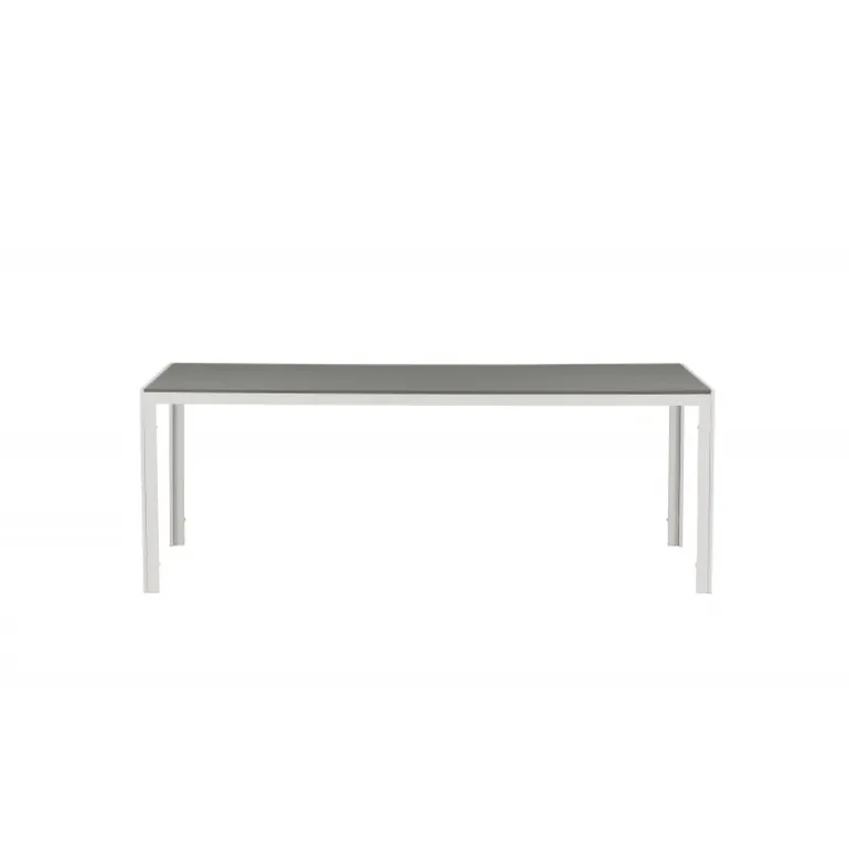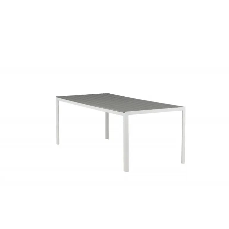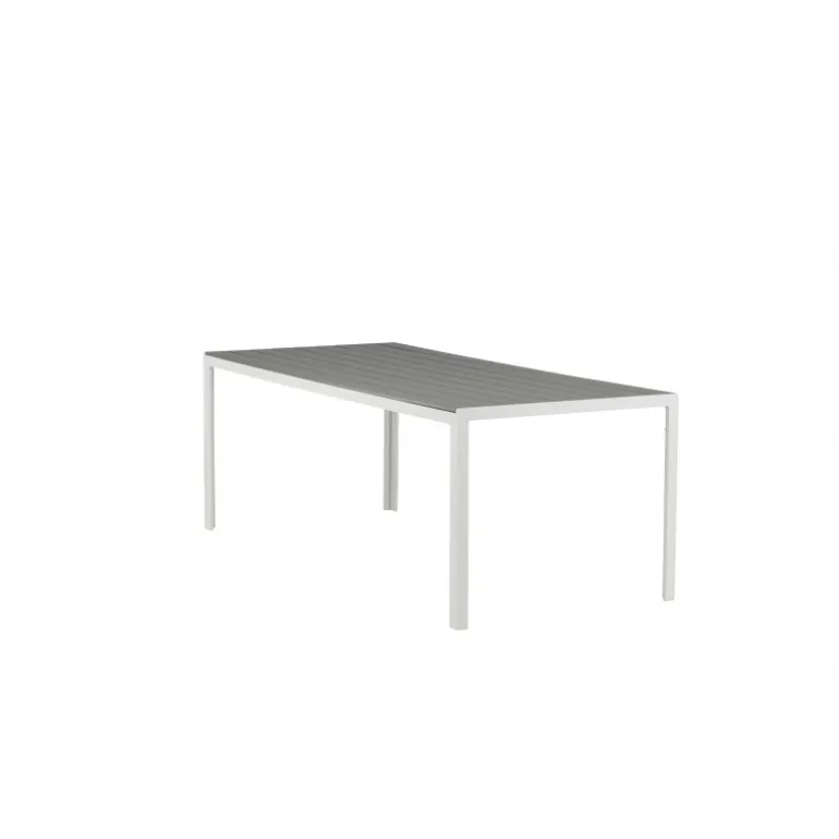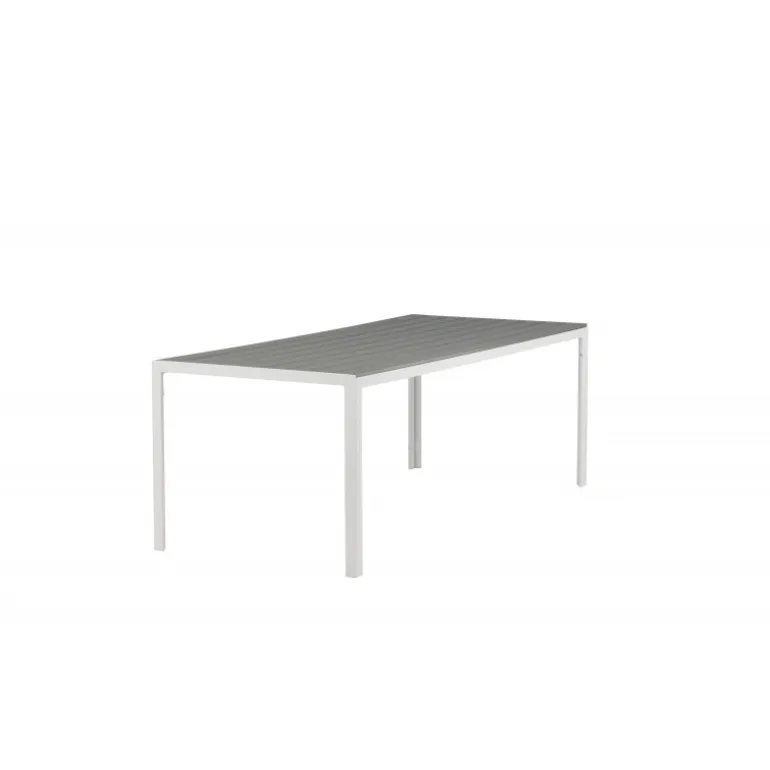 Smart, elegant og holdbart – et rektangulært spisebord med alt, hvad man behøver! Break har lige linjer i klassisk nordisk design med en grå polywood bordplade og hvide aluminiumsbordben. Materialerne er både holdbare og lette, så du nemt kan flytte spisebordet efter behov. Gør dig klar til sommerens udendørs måltider og nyd livet under åben himmel! Plejeråd: Udendørsmøbler i aluminium og rustfrit stål bør rengøres regelmæssigt med vand og mild sæbe. Skyl altid grundigt med rigeligt vand, hvilket er ekstra vigtigt, hvis møblerne er placeret tæt på havet, hvor salt kan transporteres gennem luften.