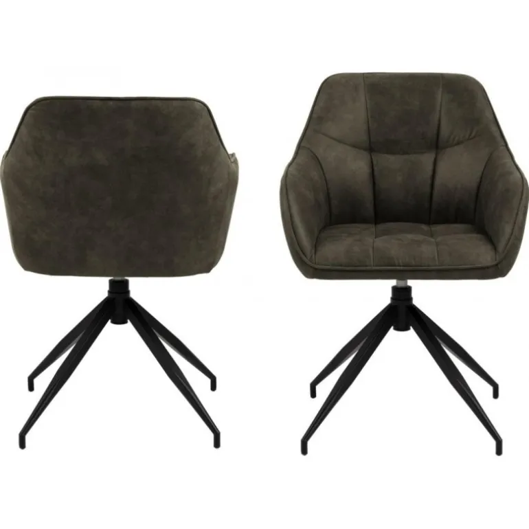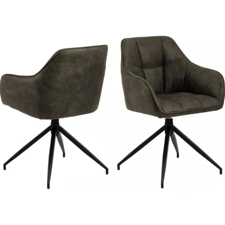 Brenda armstol Preston stof olivengrøn 38, syning firkant, 4 arms spider- stel metal, pulverlakeret ru, mat sort, med drej