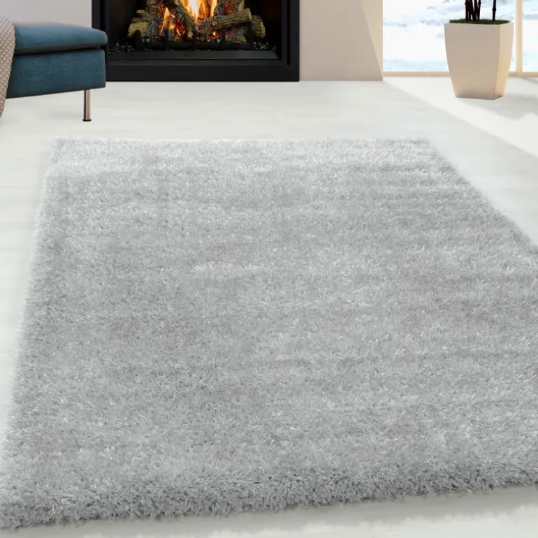 Brilliant Shaggy tæppe Ensfarvet - Sølv