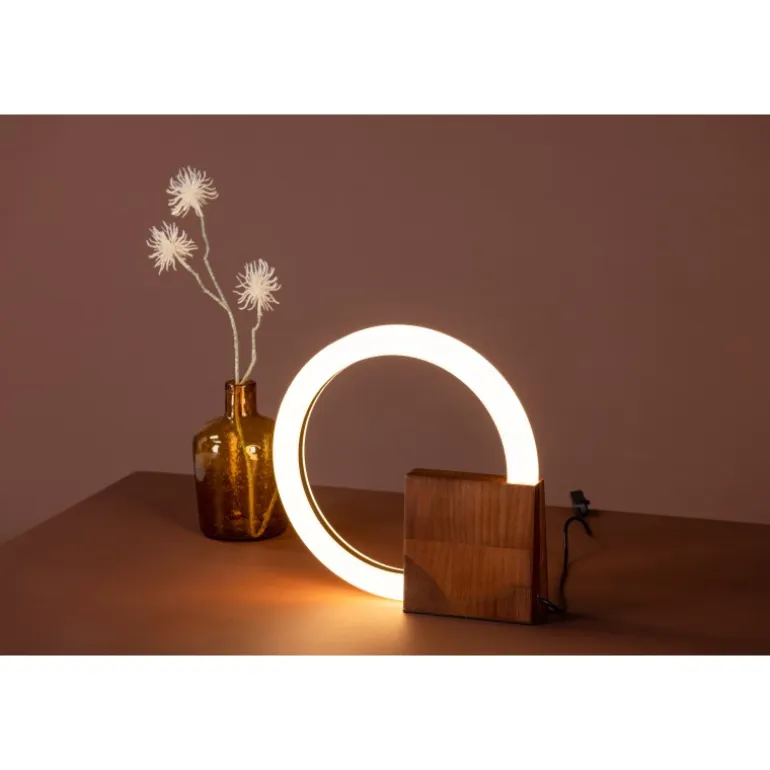 Bordlampen Brive har en lampesokkel i trendy valnøddefarvet træ og en hvid cirkulær akryllampeskærm. Med denne lampe får du en unik interiørdetalje, der lyser hele rummet op med et behageligt hvidt lys. Placer lampen et sted, der både har brug for lys og dekoration, og øg garanteret hyggefaktoren i hjemmet!