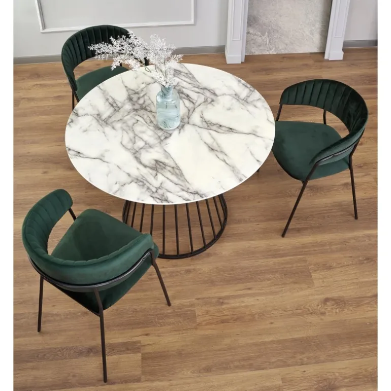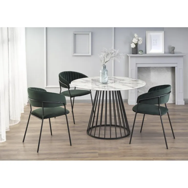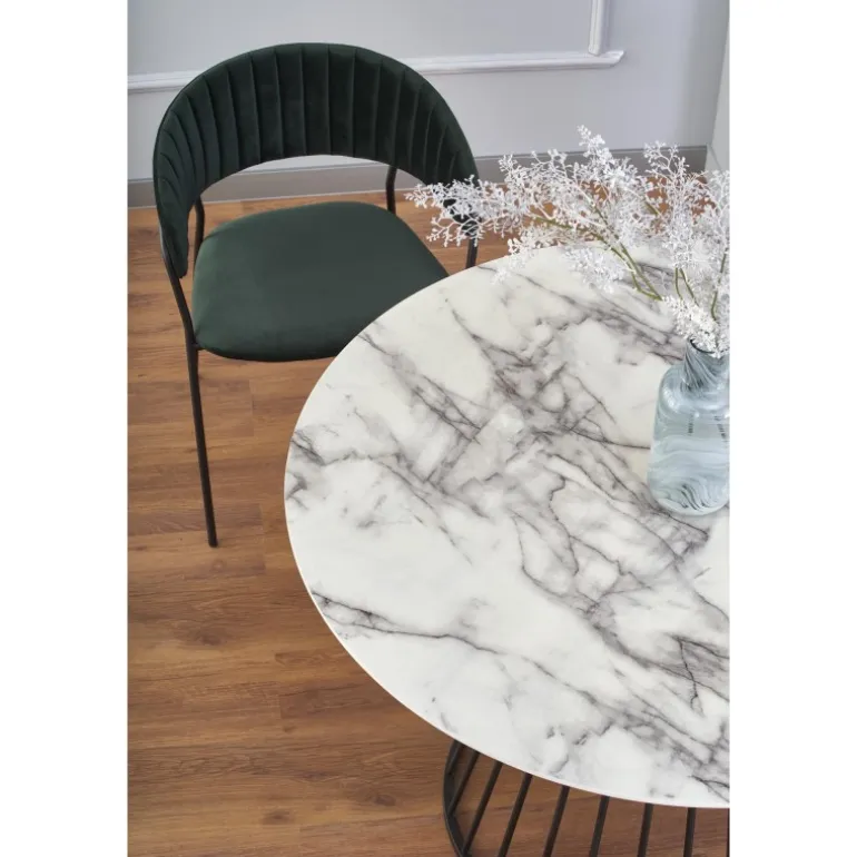 Oplev elegance og funktionalitet med BRODWAY bordet. Dette stilfulde bord har en hvid marmortop og Sorte ben, hvilket giver det et moderne og sofistikeret udtryk. Fremstillet af lamineret MDF og pulverlakeret stål, kombinerer BRODWAY holdbarhed med en luksuriøs finish. Med dimensionerne fi 110/75 cm passer dette bord perfekt til både spisestuen og kontoret. Bestil nu og tilføj et strejf af elegance til dit hjem.
