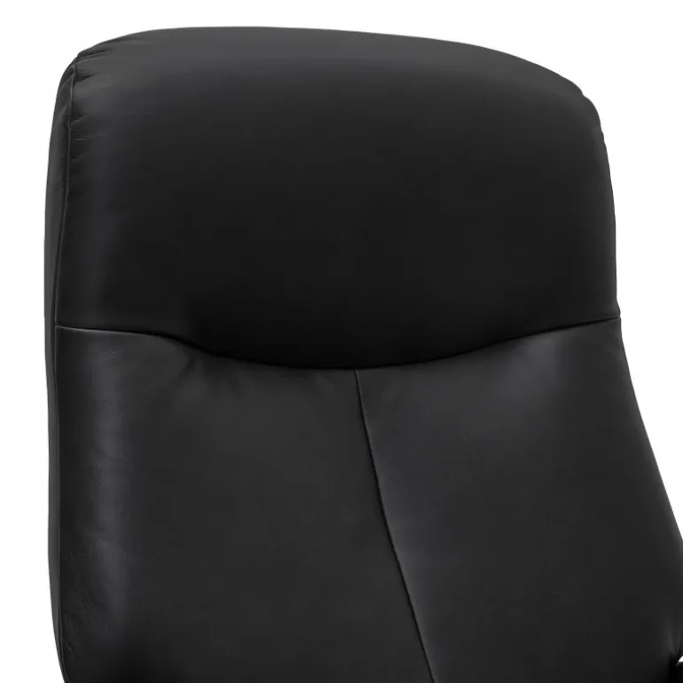 Oplev komfort i topklasse med Bull Electric Recliner – en elegant lænestol betrukket med 100% sort ægte læder. Sæde og ryg er polstret med højdensitetsskum (42 kg/m³) for fast og støttende komfort. Med et enkelt tryk lægger stolen sig blødt tilbage fra 85° til 160°, mens fodstøtten automatisk følger med. Det justerbare nakkestøtte sikrer optimal støtte, og den drejelige konstruktion på en sort metal-centralsokkel gør det let at vende sig i rummet.
