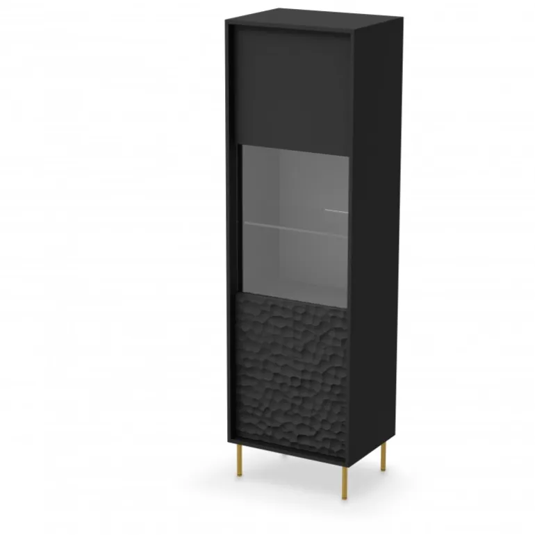 Opdag den stilfulde BULLET W-1 Vitrine, der kombinerer moderne design med funktionalitet. Denne elegante vitrine er perfekt til at fremvise dine mest dyrebare genstande og tilføje et sofistikeret touch til dit hjem. Med dimensionerne 55/41/185 cm passer den nemt ind i enhver stue eller spisestue. Materialet består af lamineret spånplade og MDF med metalben, hvilket sikrer langvarig holdbarhed og stabilitet. Farven er Sort med guld ben, hvilket skaber en luksuriøs kontrast.