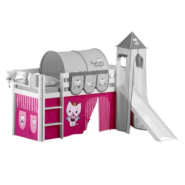 Flot forhængssæt i stof bestående af to dele med Angel Cat Sugar tema. Udsmyk børnesengen med dette flotte forhæng og skab et hyggeligt miljø i pigeværelset. Forhænget er vaskbart ved 30 grader. Forhænget passer til alle Bumle senge og kommer inkl. solidt metalstel.
