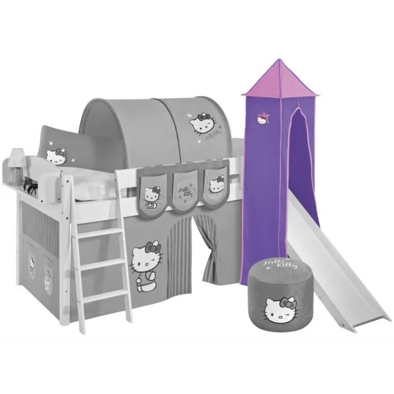 Gør din højseng til et rigtigt slot med et tårn i Hello Kitty tema . Udstyret med metalstel og stof i ren bomuld bliver dine Bumle seng til et rigtigt eventyr. Kan vaskes ved 30 grader.