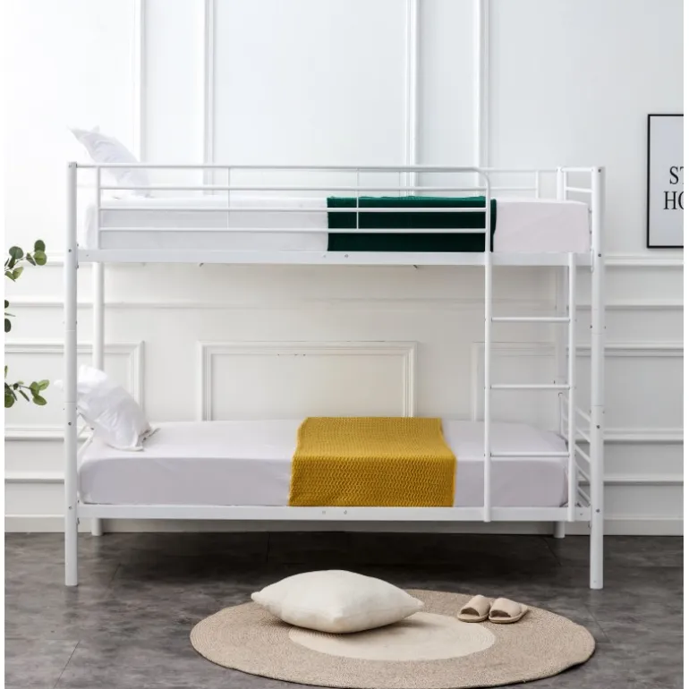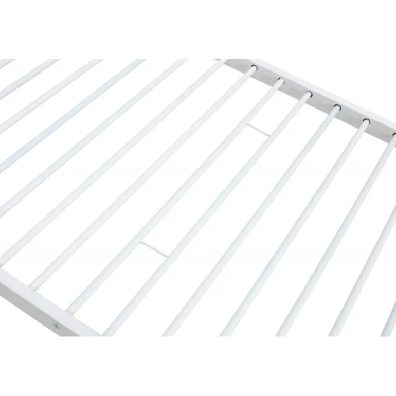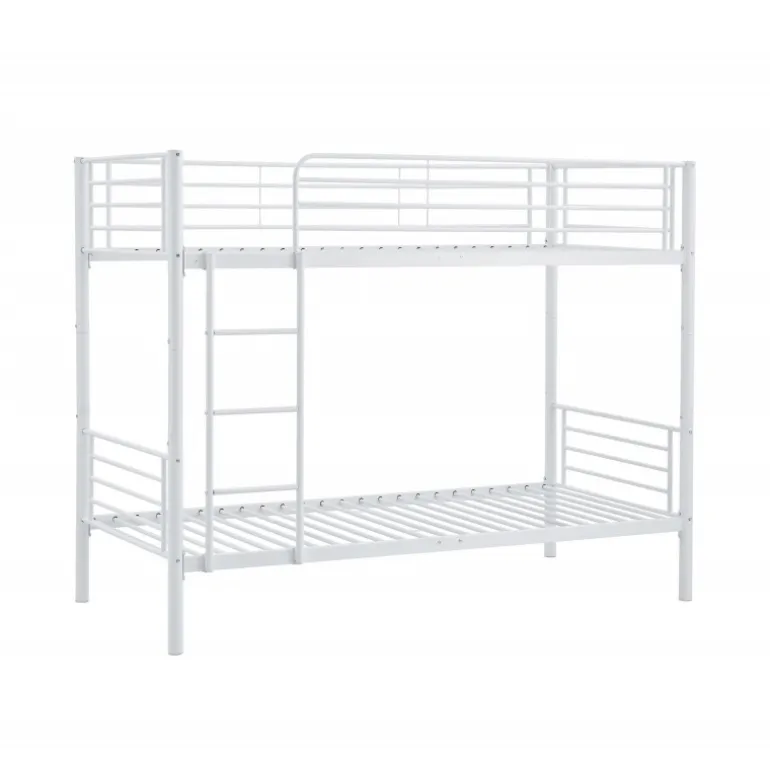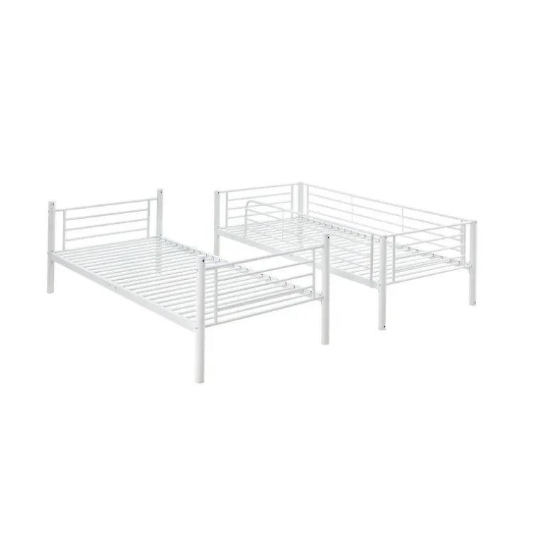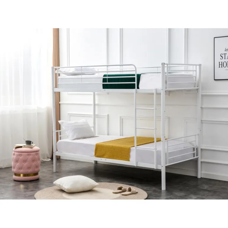 BUNKY køjeseng er den ideelle løsning til at maksimere pladsen i dit soveværelse. Denne køjeseng kan nemt omdannes til to enkeltsenge, hvilket giver fleksibilitet og bekvemmelighed. Fremstillet af pulverlakeret stål i en elegant hvid farve, er sengen både robust og stilfuld. Bemærk venligst, at sengen leveres uden madras, men du kan vælge mellem de valgfrie madrasser POLARIS 90 eller SYRIUSZ 90x200cm for ekstra komfort.