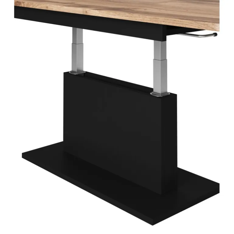 BUSETTI sofabordet kombinerer funktionalitet og æstetik i ét stilfuldt møbel. Dette løfte-sofabord er fremstillet af lamineret spånplade og kommer i en elegant kombination af wotan eg og Sort mat finish. Med dimensioner på 126-167/70/56-74 cm tilbyder det fleksibilitet og praktisk anvendelse i enhver stue. Vær opmærksom på, at de individuelle halvdele af bordpladen kan have forskellige kornmønstre, hvilket tilføjer en unik karakter til hvert bord.