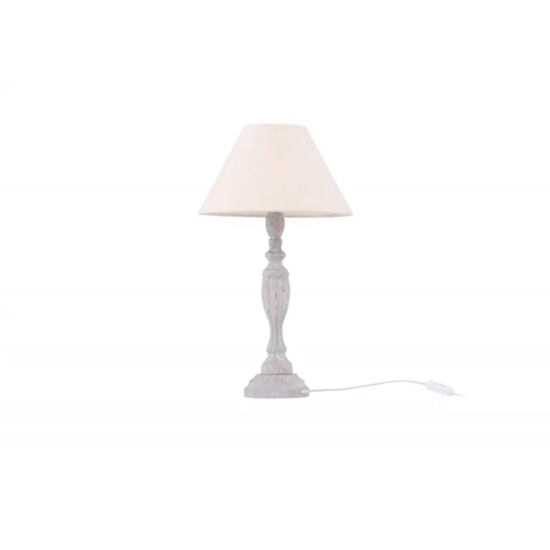 Caen Bordlampe har en grå træunderdel med patina, der giver lampen et rustikt udtryk. Underdelen har et smukt design med afrundede former, der skaber en blød følelse. Lampeskærmen er lavet af linned og har en smuk jordnær beige farve. Med denne lampe får du en elegant interiørdetalje og et behageligt lys. Den høje højde gør lampen perfekt i vinduet eller på en kommode i stuen.
