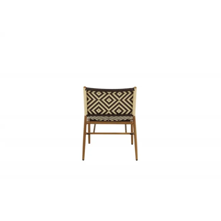 Calapan Lounge Stol imponerer med sit moderne design! Calapan er lige så stilren som den er trendy med sin dekorative ryg og sæde i mønstret kunstig rattan i beige og brune farver og stel i naturfarvet aluminium. Placer den som en stilfuld solitær eller sammen med loungegruppen, og du får et luksuriøst blikfang i udestuen!