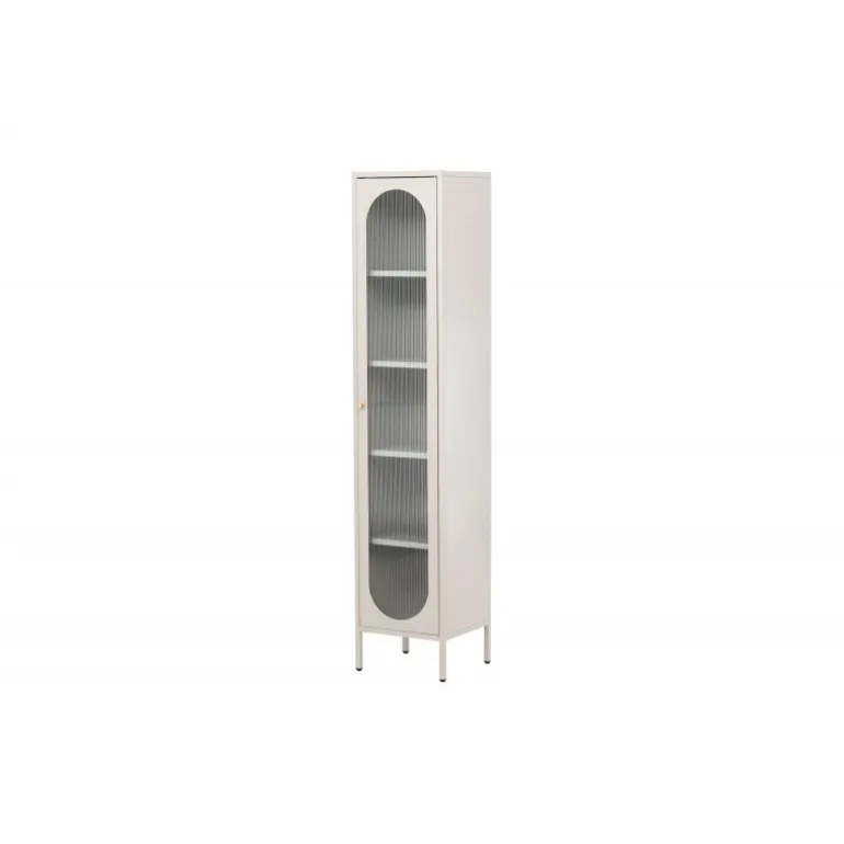 Med Cali stålskab får du en smagfuld og praktisk opbevaringsløsning, der kombinerer stil og funktionalitet. Cali kabinet, fremstillet af stål, er et udtryksfuldt og pålideligt møbel, der passer perfekt ind i både moderne og traditionelle interiører. Den elegante beige farve giver skabet en tidløs karakter, der vil komplementere din boligindretning med elegance. Skabet er udstyret med fire rummelige hylder, der giver rigelig plads til organisering. Skabsdøren er lavet af bølget glas, hvilket tilføjer en subtil tekstur og en unik visuel dimension til møblet. Opgrader dit interiør med Cali stålskab og skab en stilfuld og organiseret atmosfære i dit hjem. Uanset om du placerer det i stuen, soveværelset eller kontoret, vil Cali være en praktisk og elegant tilføjelse til din indretning.