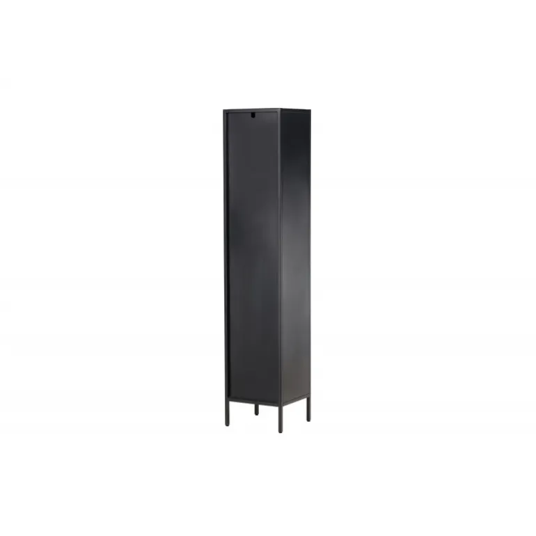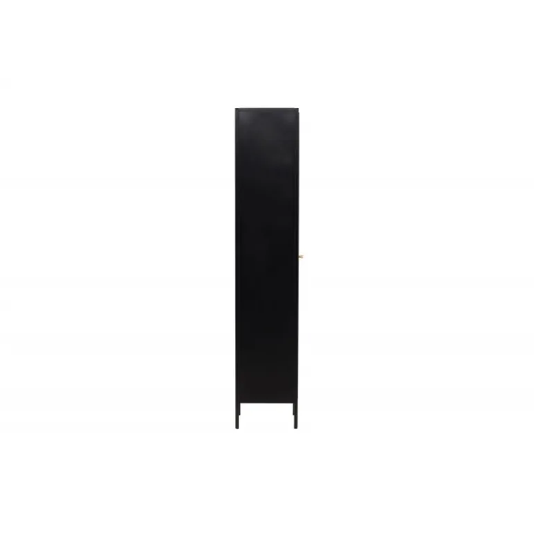 Med Cali stålskab får du en smagfuld og praktisk opbevaringsløsning, der kombinerer stil og funktionalitet. Cali skabet, lavet af stål, er et udtryksfuldt og pålideligt møbel, der passer perfekt ind i både moderne og traditionelle interiører. Den elegante sorte farve giver skabet en tidløs karakter, der vil komplementere din boligindretning med elegance. Skabet er udstyret med fire rummelige hylder, hvilket giver dig masser af plads til organisering. Skabets dør er lavet af bølget glas, hvilket tilføjer en subtil tekstur og en unik visuel dimension til møblet. Opgrader din indretning med Cali stålskab og skab en stilfuld og organiseret atmosfære i dit hjem. Uanset om du placerer det i stuen, soveværelset eller kontoret, vil Cali være et praktisk og elegant supplement til dit interiør.