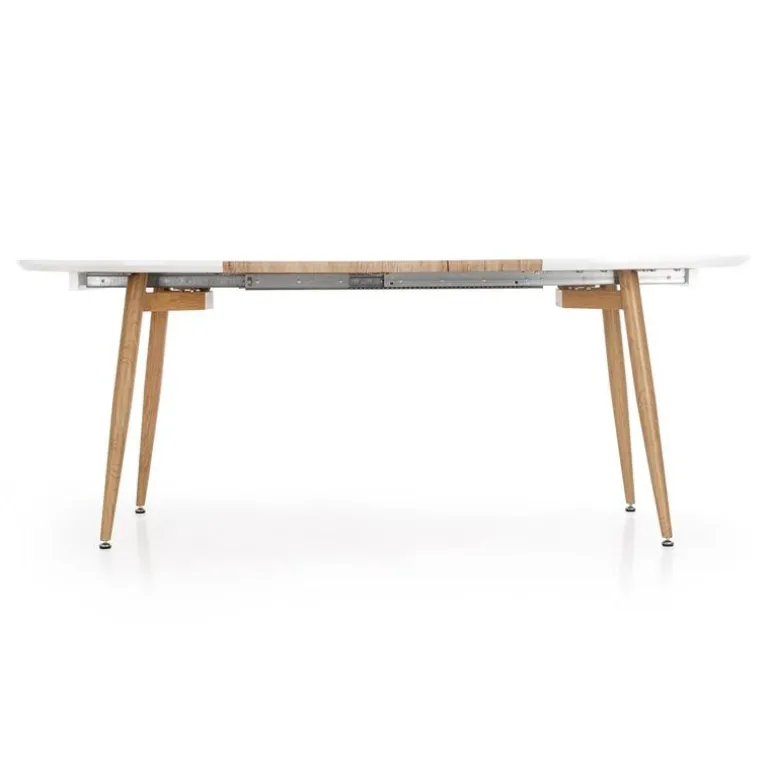 Oplev funktionalitet og stil med vores CALIBER Spisebord med udtræk. Med dimensioner på 160-200/90/76 cm og fremstillet af lakeret MDF, lamineret MDF og malet stål, er dette bord en perfekt tilføjelse til ethvert moderne hjem. Fås i en elegant hvid mat eller en varm san remo eg finish, der passer til enhver indretningsstil. Bordet er ideelt til både hverdagsbrug og særlige lejligheder, hvor du har brug for ekstra plads. Med sin robuste konstruktion og æstetiske design kombinerer CALIBER Spisebord med udtræk både kvalitet og funktionalitet.