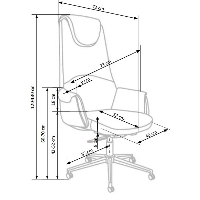 - Dimensioner: 73/73/120-130/42-52 cm passer til alle kontorer