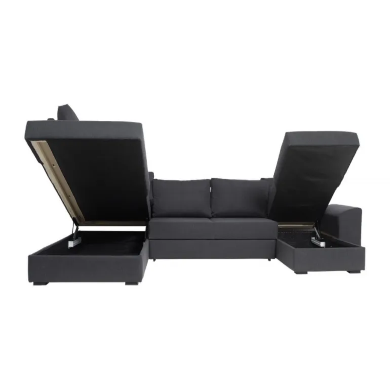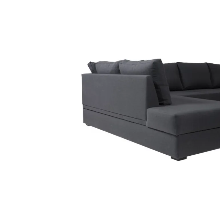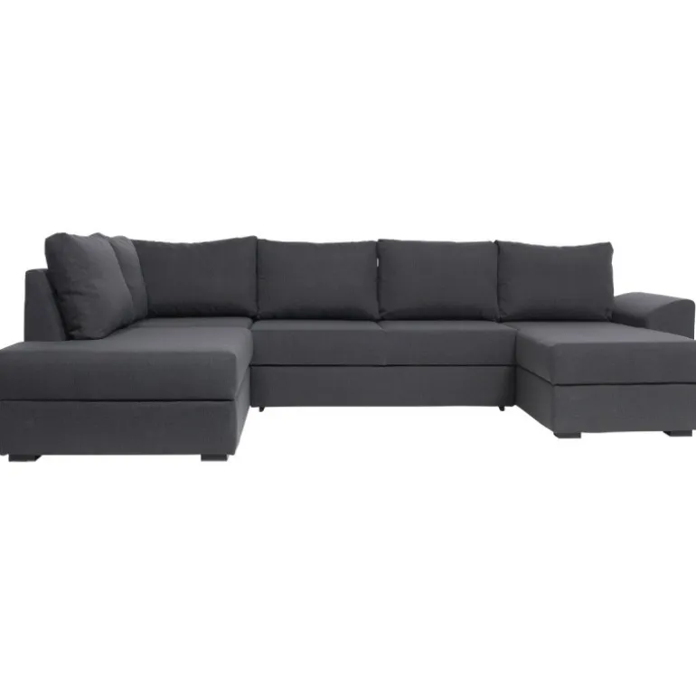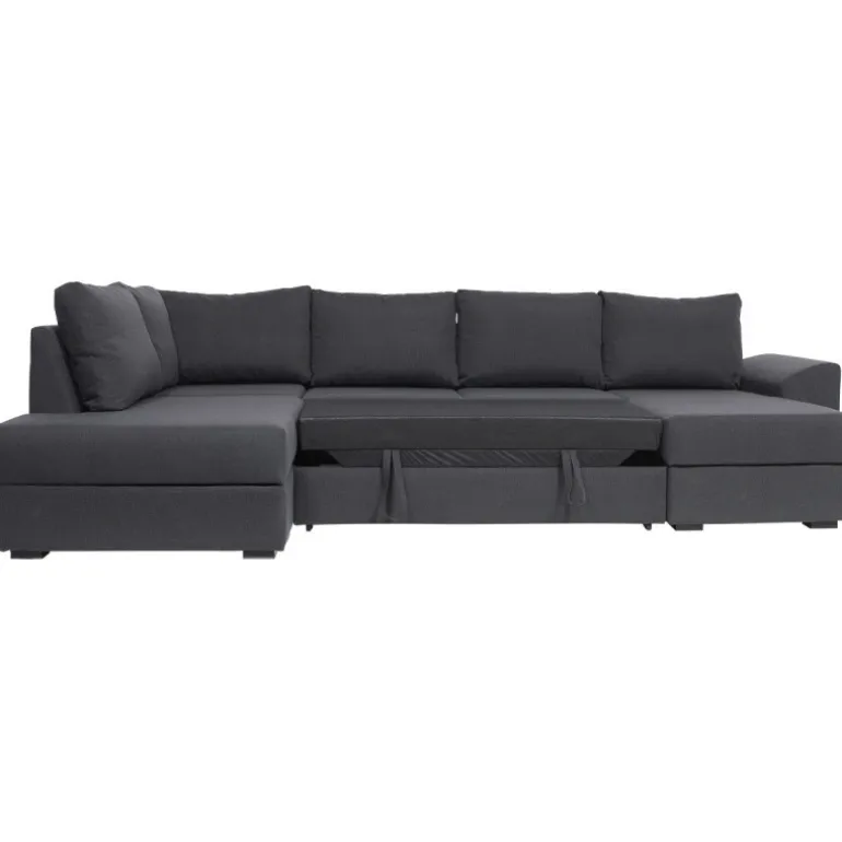 Canapé højrevendt U-sofa med sovefunktion og kæmpe magasiner i begge sider. En stor familie sofa med massere plads til overnattende gæster. Canapé sofaen har løse ryghynder og en fast siddekomfort. Sofaen er betrukket med strukturvævet antracit tekstil.