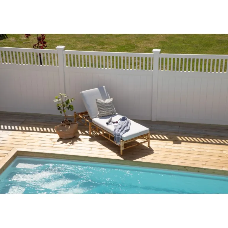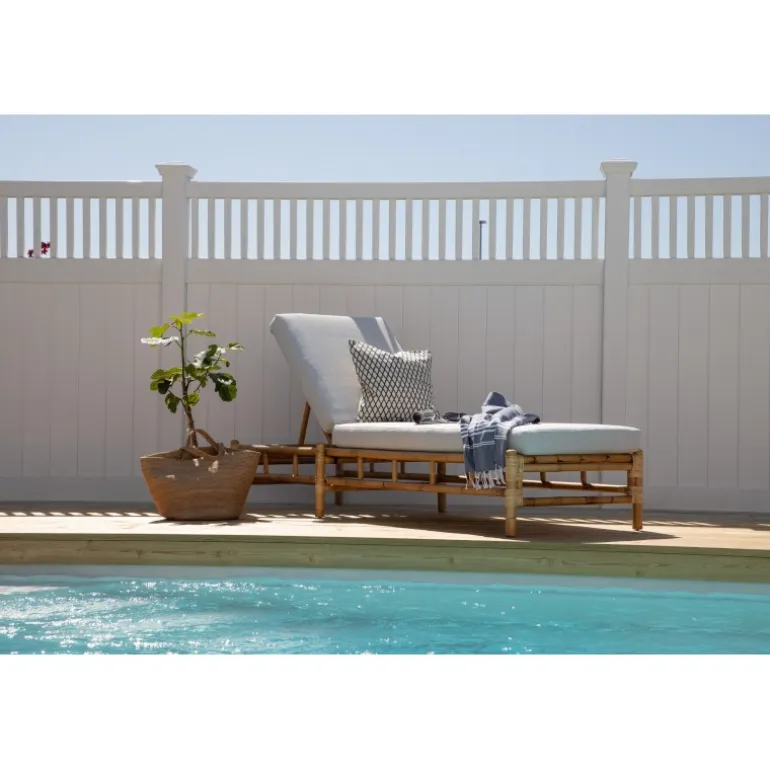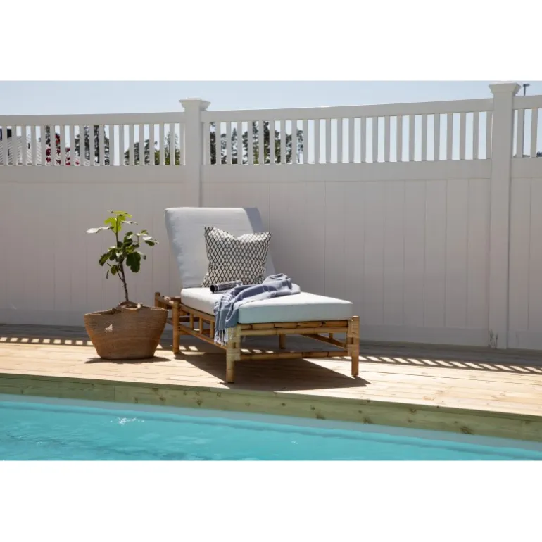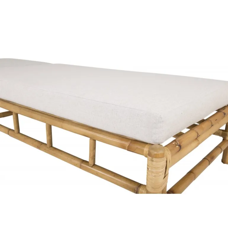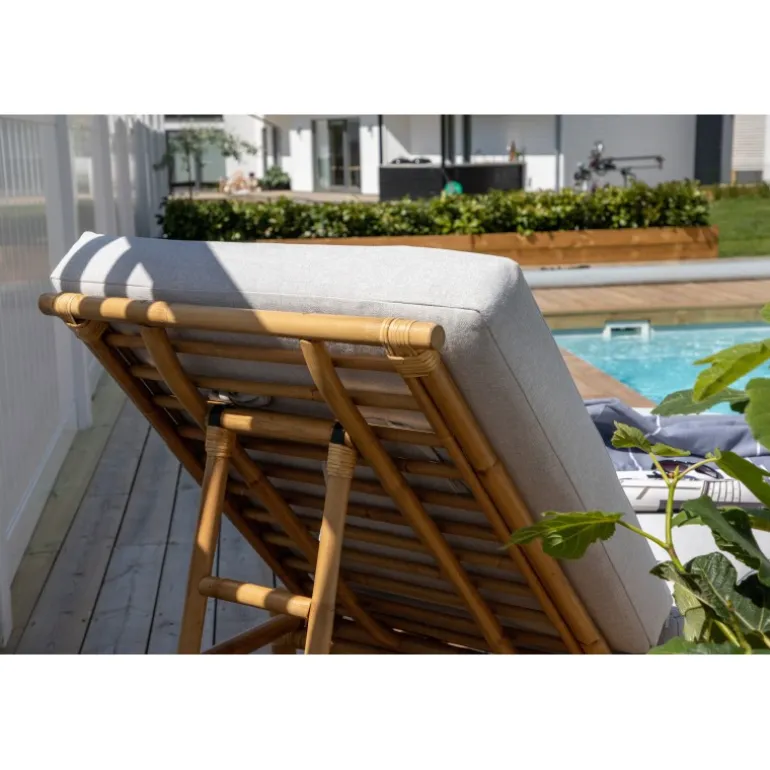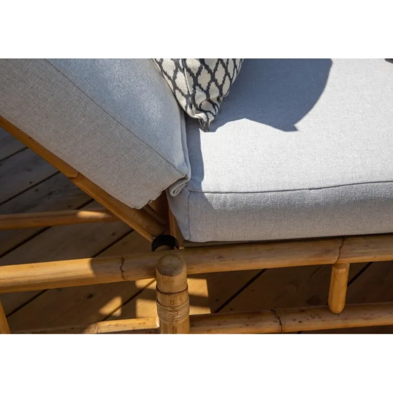 Indret terrassen med en moderne solseng i luksuriøst udseende fra Cane-serien! Denne komfortable liggestol skaber en indbydende og tropisk atmosfære med sit gennemtænkte design. De tilhørende grå puder er lavet af blødt polyesterstof. Kroppen er lavet af naturligt farvet bambus, og det naturlige materiale giver hvert enkelt møbel en unik karakter. En stilfuld og smart solseng, der tiltrækker blikket og øger komforten på en solrig sommerdag. Plejeråd: Bambus er et naturligt materiale, der er utroligt pænt og trendy, men ikke særlig vejrbestandigt. Møblerne bør helst ikke stå udendørs, men placeres i tørre rum. Undgå store temperaturforskelle. Den nemmeste rengøring sker med en fugtig klud. Polyesterpuderne er smuds- og vandafvisende og kan rengøres ved forsigtig håndvask og drypning. Møbelskum fungerer også godt.