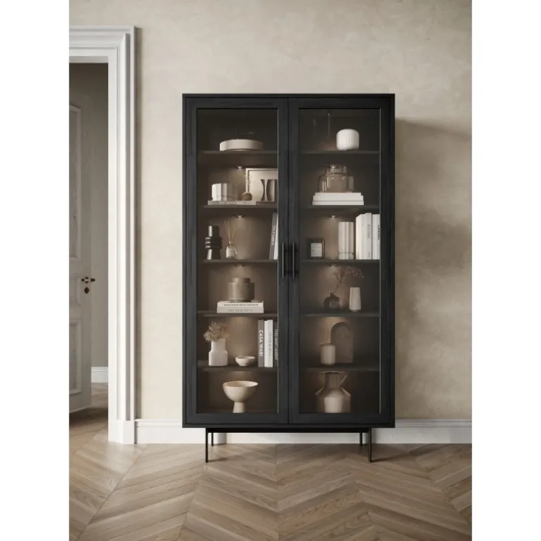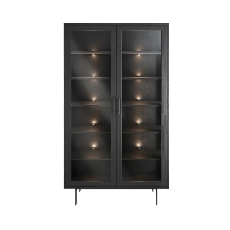 Vitrinen kommer med henholdsvis 8 flytbare træhylder, forberedt til eftermontering af lys, som vil sikre et endnu bedre udtryk og flottere fremvisning.