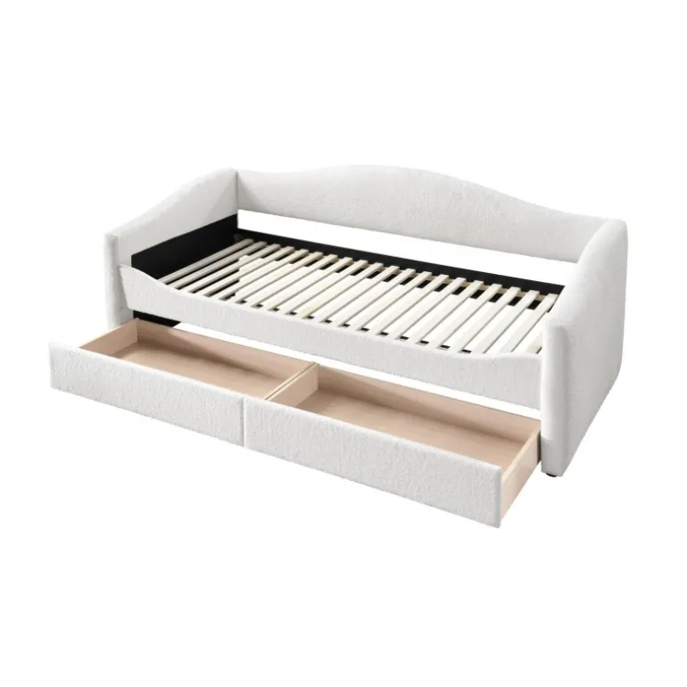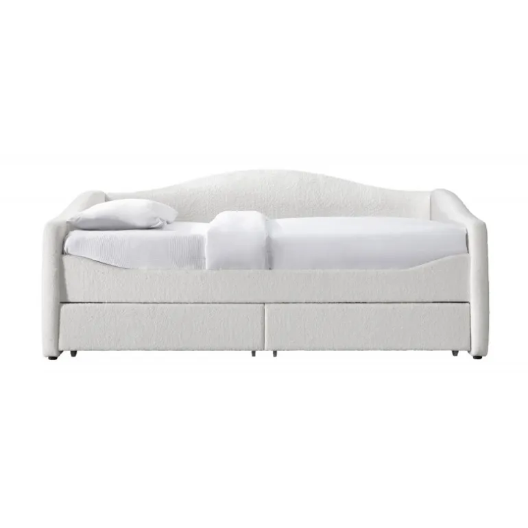 Oplev ultimativ komfort med CAYDENCE 90x200cm sengen i elegant cremefarvet boucle stof. Med dimensioner på 99/216/94 cm passer denne seng perfekt til ethvert soveværelse. Sengen kommer med praktiske skuffer til opbevaring, hvilket gør den både stilfuld og funktionel. Bemærk, at sengen leveres uden madras, men du har mulighed for at tilføje enten POLARIS 90x200cm eller SYRIUSZ 90x200cm madrassen for ekstra komfort.