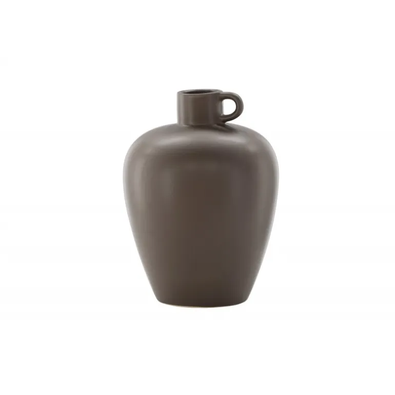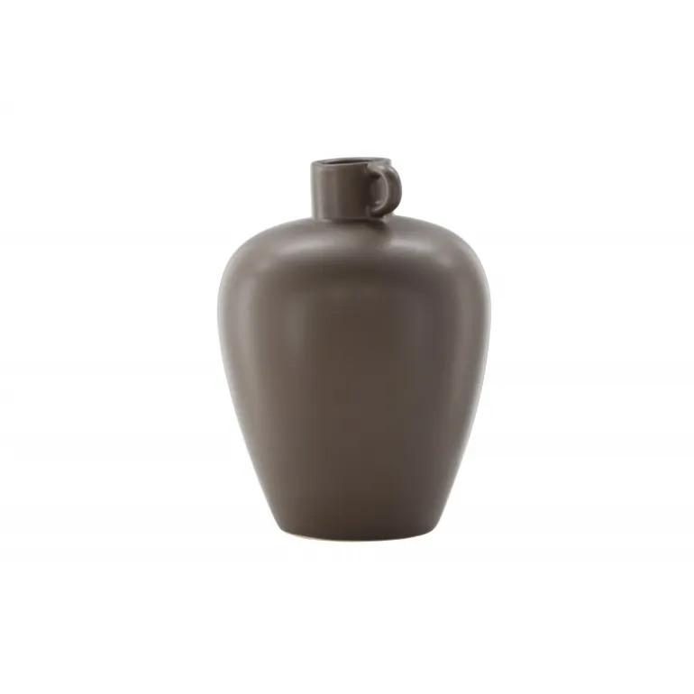 Velkommen til Cent-serien, hvor hver vase er en unik kunstnerisk skat. Cent-urnen, med sin højde på 33 cm, er en enestående del af denne kollektion. Fremstillet i robust stentøj og dekoreret i en varm brun nuance, udstråler Cent en tidløs skønhed, der vil være en værdifuld tilføjelse til dit hjem. Formet som en urne, udviser vasen en fortryllende silhuet – smallere i bunden og elegant udvidende opad. Den harmoniske kurve giver ikke kun et visuelt højdepunkt, men skaber også en stabil base til at fremvise dine blomsters skønhed på den bedst mulige måde. Et lille håndtag på den ene side tilføjer en ekstra dimension, der skaber en balance mellem funktionalitet og æstetik. Dette lille håndtag bliver et subtilt fokuspunkt og bidrager med et stilfuldt touch til vaseens samlede udseende. Uanset om du vælger at placere den alene som et kunstværk eller fylde den med blomster, vil Cent tilføje stil til din indretning. Udforsk skønheden ved Cent-serien og lad dit hjem blive beriget af dens elegance og særprægede stil.
