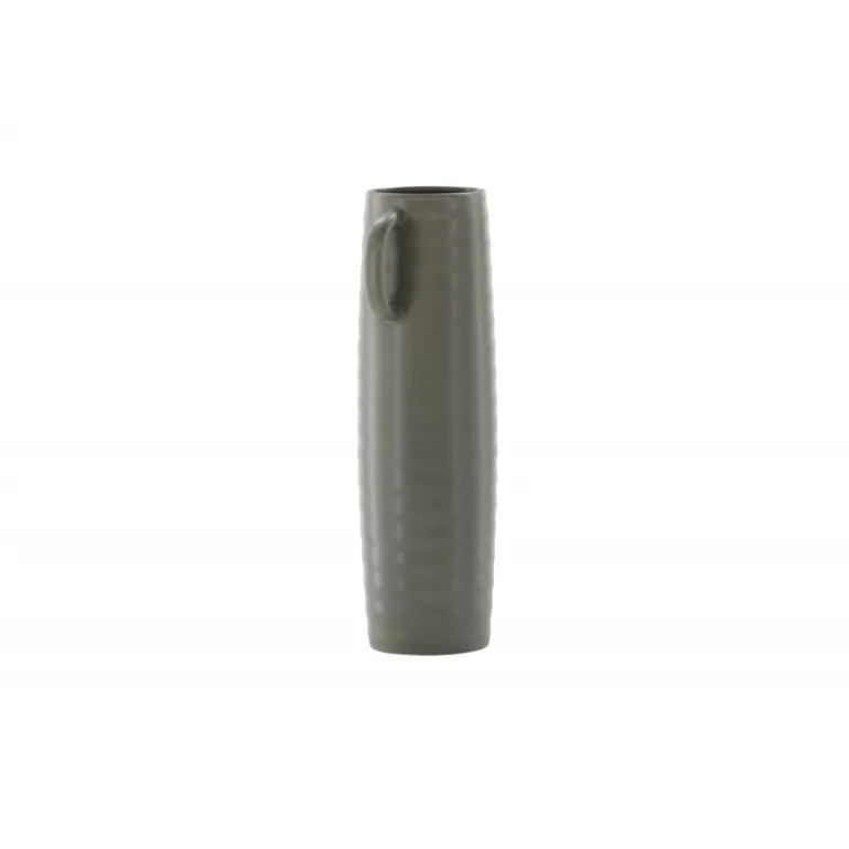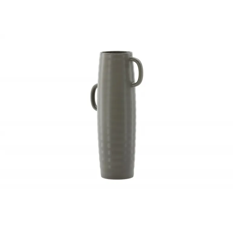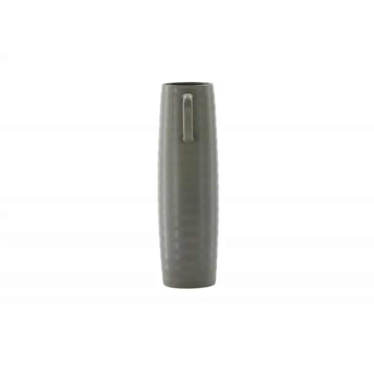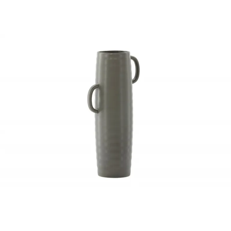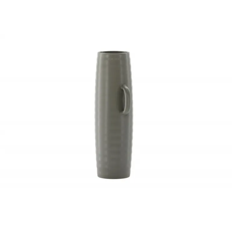 Introducer en elegant touch til dit hjem med din nye favorit, Cent. Den står imponerende 41 centimeter høj og er en mørkegrå skønhed fremstillet af holdbart stentøj. Vasens struktur har subtile bølger, der tilføjer en organisk følelse til dens moderne design. Cent er mere end bare en vase; det er en kunstnerisk oplevelse. Dens unikke håndtag, placeret på hver side, introducerer et ekstra lag af detaljer. Disse håndtag er placeret i forskellige højder og giver vasen en dynamisk og harmonisk balance. Denne asymmetriske touch forvandler Cent til et kunstværk i sig selv. Med Cent kan du tilføre dit hjem en sofistikeret og moderne atmosfære. Uanset om den vises som en selvstændig ornament eller fyldt med smukke blomster, vil Cent helt sikkert blive et samtalestykke og en elegant tilføjelse til din indretning.