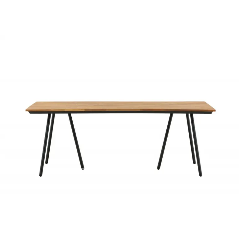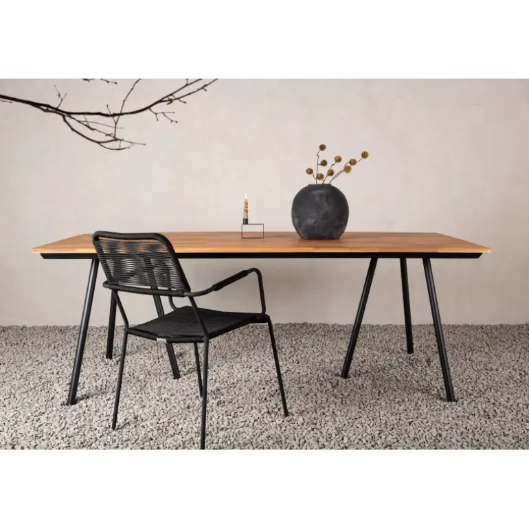 Stilfuldt, smart og holdbart – hvad mere kan man ønske sig? Chan er et naturligt spisebord lavet af brun akacie med et sort stålunderstel. Det skandinaviske design bliver iøjnefaldende med let skrånende ben, der bliver til en flot detalje. Bordet er perfekt til både fest og hverdag, så vis måltiderne frem og nyd sene sommeraftener sammen! Plejeråd: For at dit udendørs møbel i akacie/hårdttræ kan bevare sin finish, bør det behandles med olie. Da træet i sig selv ikke er så fedtet fra naturens side, skal det olieres lidt nu og da, selv i sæsonen. Nyindkøbte møbler skal mættes med olie, påfør flere lag i træk, så det maksimale olieindhold absorberes.
