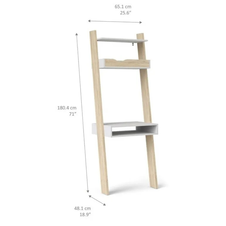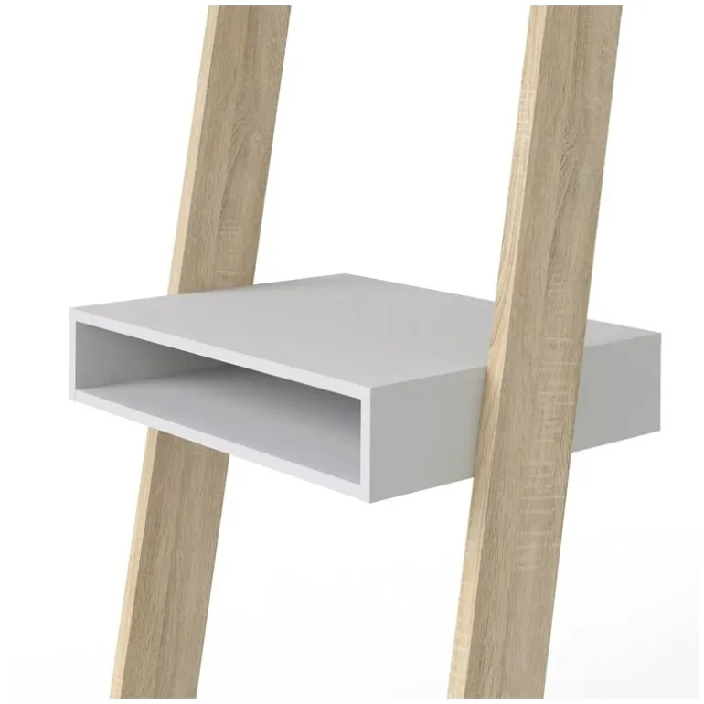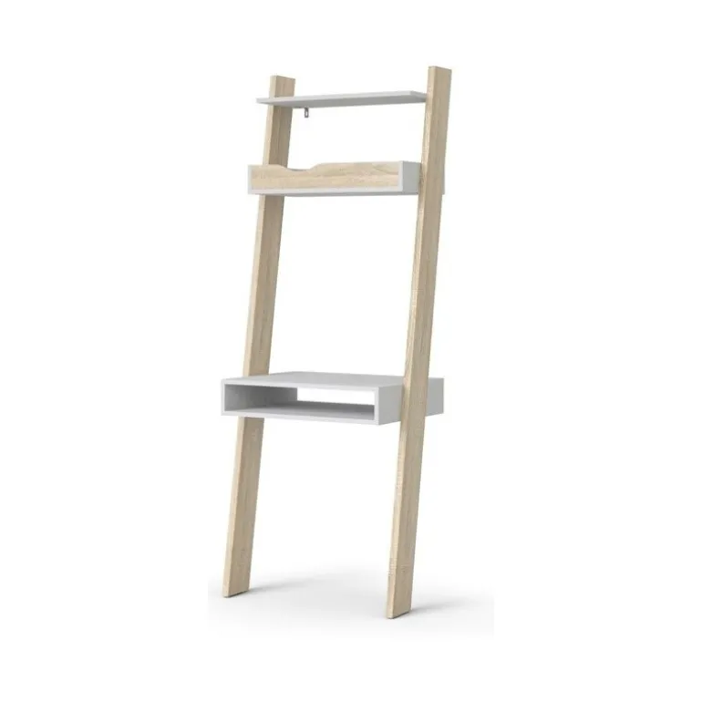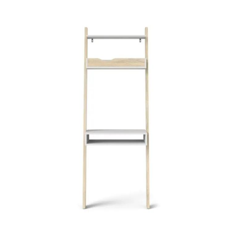 Charlie skrivebordsreol i nordisk retro stil udført i flot eg strukturmelamin kombineret med hylder i mat hvid. Reolen forener behovet for design og funktionalitet, så du roligt kan have arbejdsstationen synligt placeret i stuen, alrummet eller på værelset. Reolen er udstyret med 1 tophylde, 1 notatbakkehylde samt skrivebordsplade med mulighed for opbevaring af eksempelvis bærbar computer.