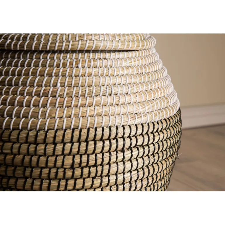 Chennai er vores runde opbevaringskurv med låg! Denne kurv kan bruges til mange formål; håndklæder i badeværelset, småopbevaring i stuen eller hvorfor ikke fylde den med legetøj i børneværelset? Den er lige så dekorativ som interiør, som den er funktionel og passer i flere rum. Kurven er naturfarvet og grøn med hvide detaljer. Dekorer dit hjem smart og pænt!
