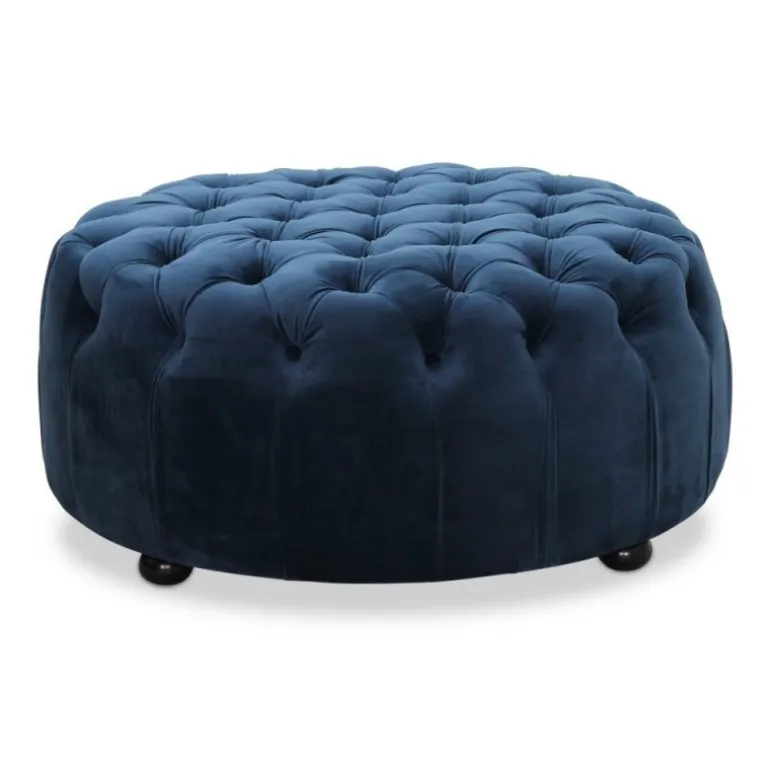 Chesterfield Cambridge fodskammel i blå Velour! Kan placeres overalt i hjemmet som ekstra sæde eller til et hyggeligt interiør!