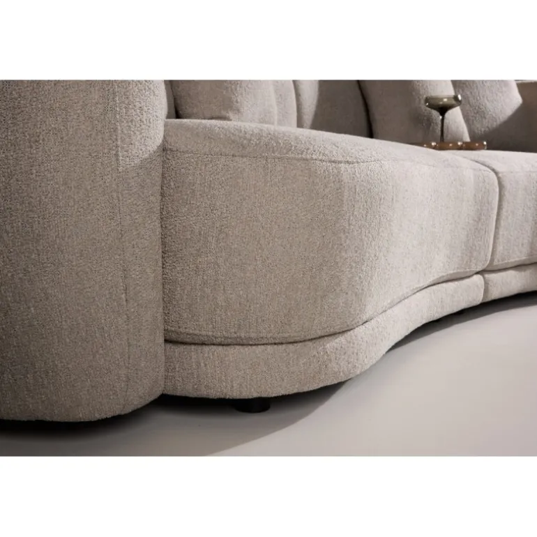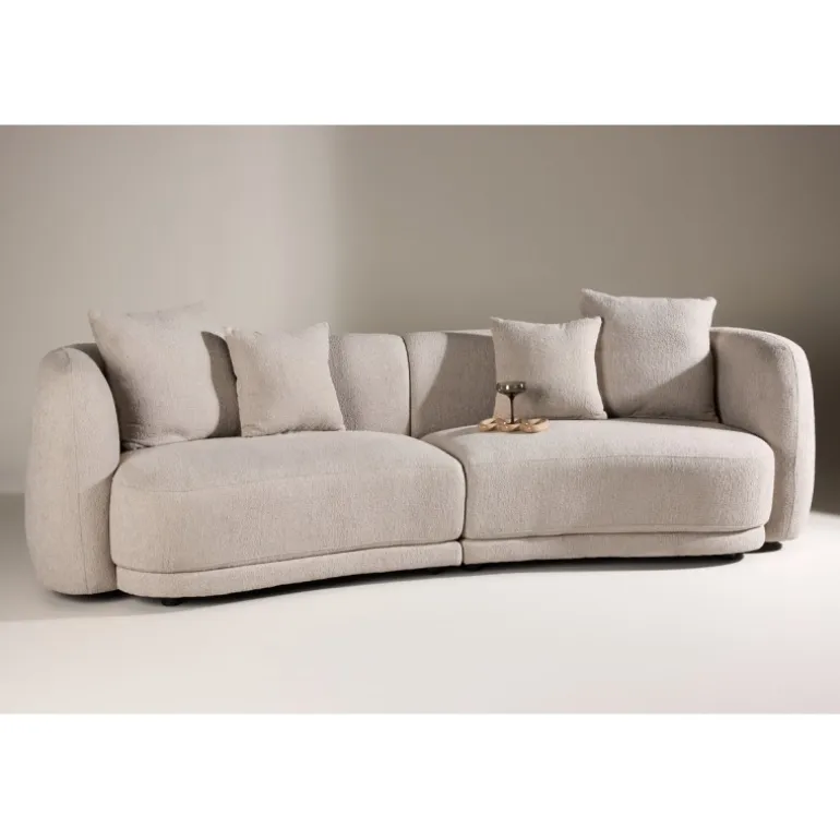 Det bløde bouclémateriale tilfører en elegant tekstur og varme, som smelter smukt ind i både skandinaviske og moderne indretninger. Sofaens runde former, generøse sædepuder og behagelige ryglæn inviterer til både afslapning og hyggelige stunder med familie eller gæster.