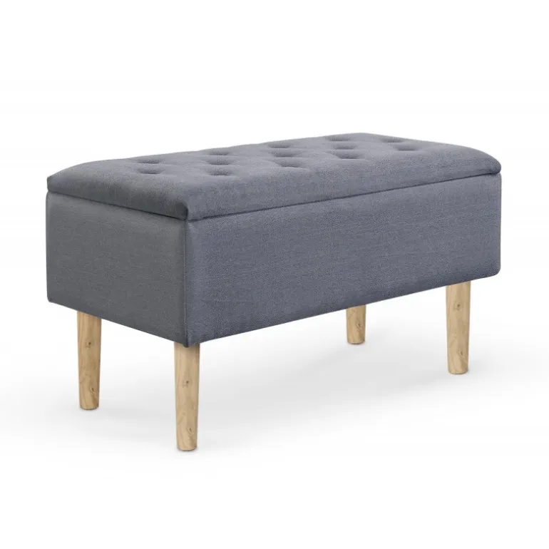 CLEO bænk med opbevaring er den perfekte løsning til både siddeplads og praktisk opbevaring. Med en polstring i grå og naturlige træben passer den elegant ind i enhver indretning. Denne bænk er lavet af klæde og massivt gummitræ, hvilket sikrer både holdbarhed og komfort. Ideel til stuen, gangen eller soveværelset, dens opbevaringsrum hjælper med at holde dit hjem organiseret og stilfuldt.