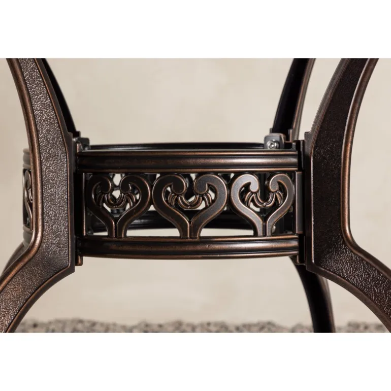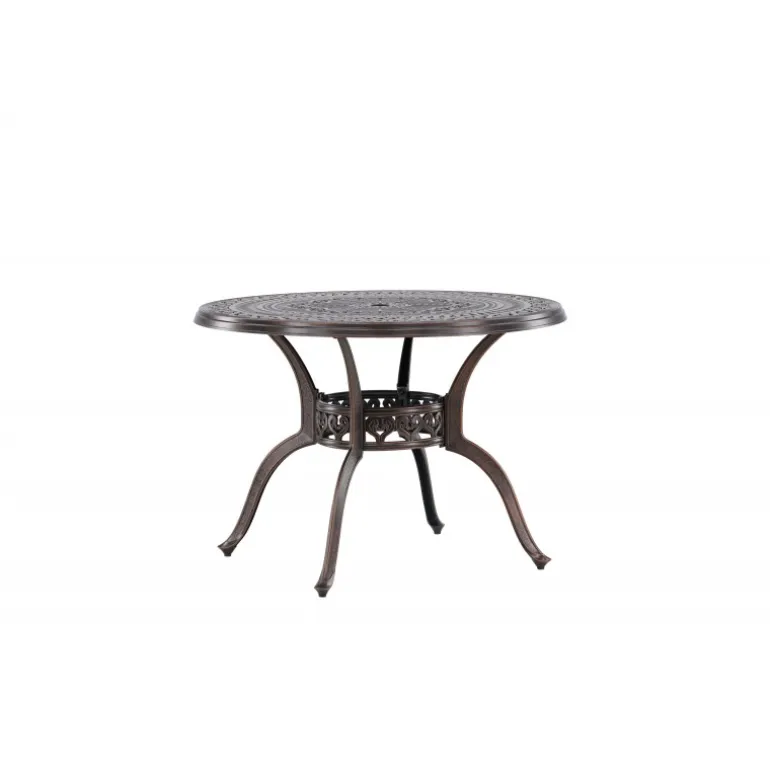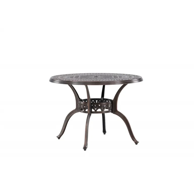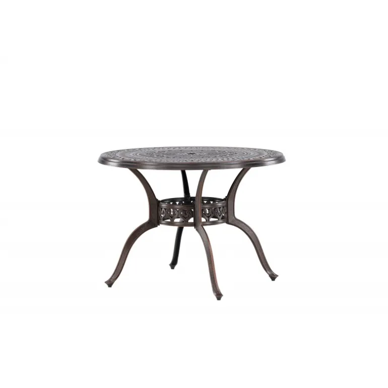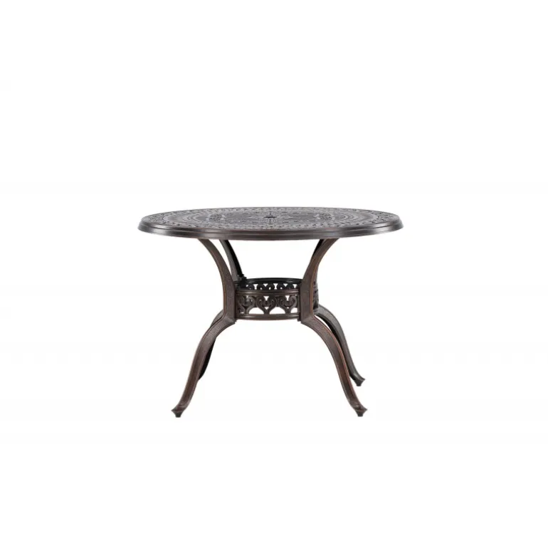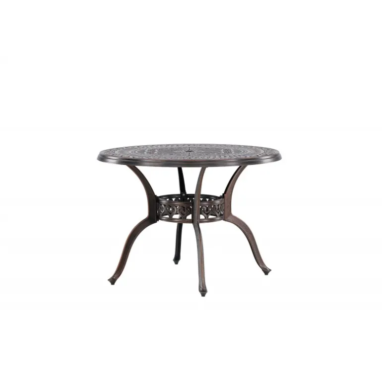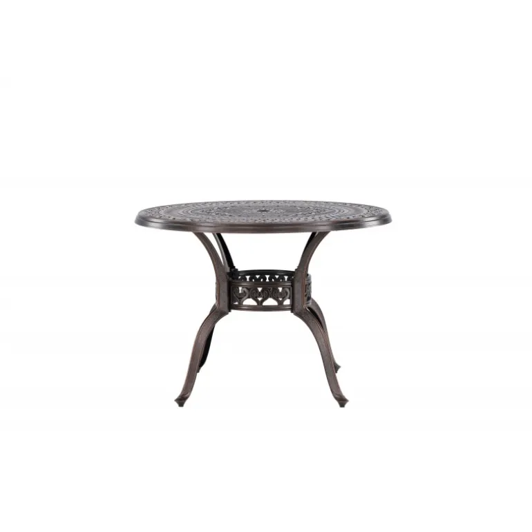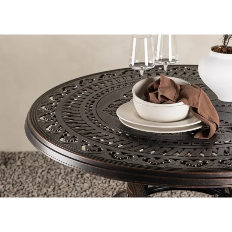 Leder du efter et stilfuldt bord med plads til to i din boligindretning? Så er Coimbra det perfekte valg for dig. Med en diameter på 100 cm tilbyder dette bord masser af plads til to personer til at nyde et dejligt måltid eller en behagelig samtale. Coimbra er lavet af holdbart aluminium og kommer i en smuk brun nuance, der tilføjer et strejf af elegance til dit hjem. Den mønstrede bordplade har en unik struktur, der ikke kun giver bordet en moderne æstetik, men også et behageligt element, der gør det til et fokuspunkt i dit rum. Dets rene og stilfulde design, kombineret med kvalitetsmaterialer, gør det til et bord, der vil være en del af din indretning i lang tid fremover. Lad Coimbra være midtpunktet i din have eller på din balkon, og nyd dets elegance og kvalitet dag efter dag.