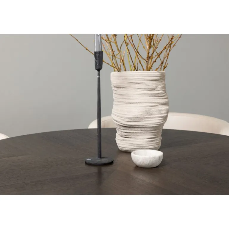 - Dekorativ cylinderformet base i sort metal for et moderne touch.