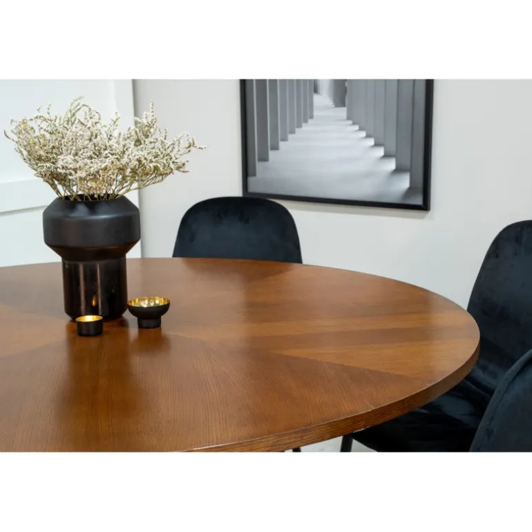 - Komplet Sæt: Inkluderer rundt spisebord og Polar spisebordsstole.