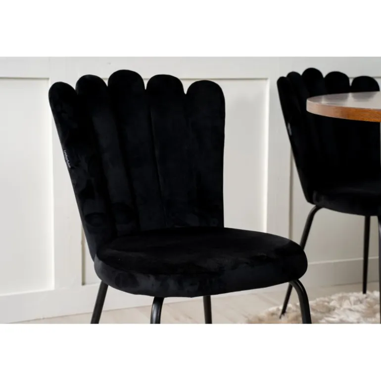- Elegant design: Kombinerer sorte velourstole med en mørkebrun bordplade.