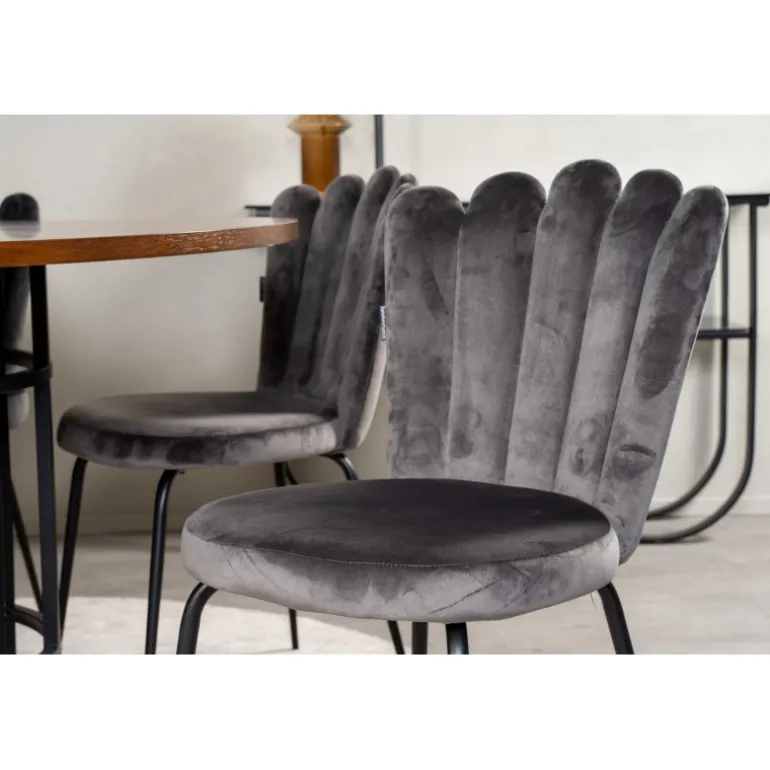 Rundt Spisebordssæt med en dejlig aura fra Furniture Fashion kollektionen. Her er materialer og farver blandet i en fantastisk kombination. Bordet Copenhagen sammen med grå spisestole i Limhamn serien. De unikke ryglæn på stolene giver Spisebordssættet et vidunderligt unikt udtryk. Perfekt til enhver moderne spisestue, dette sæt vil tilføre elegance og stil til dit hjem.