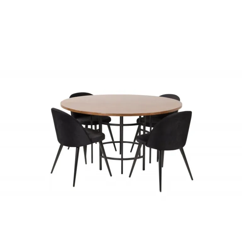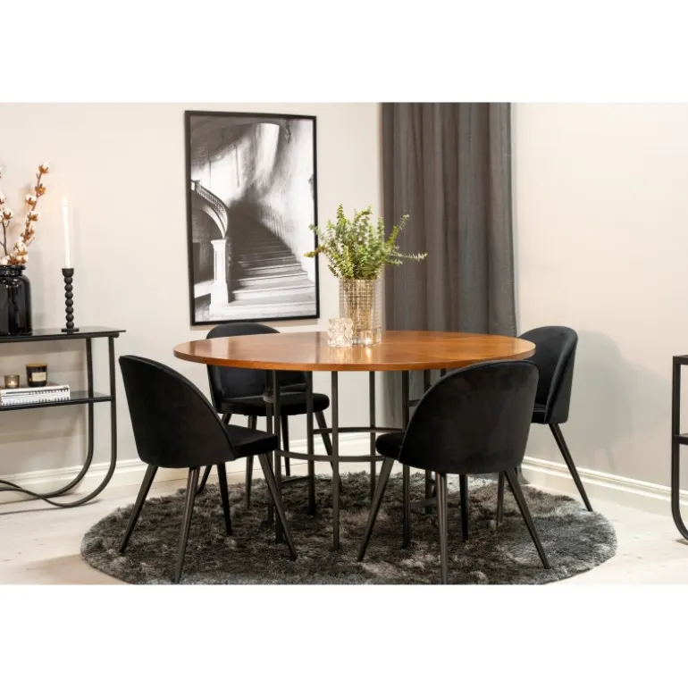 Oplev luksus og elegance med vores Copenhagen Rundt Spisebordssæt. Dette moderne Spisebordssæt skaber en luksuriøs følelse i dit hjem. Copenhagen spisebordet med en naturlig bordplade kombineret med de bløde og komfortable Velvet stole tilbyder direkte luksus og elegance. Sættet er både stilfuldt og funktionelt, perfekt til enhver indretning.