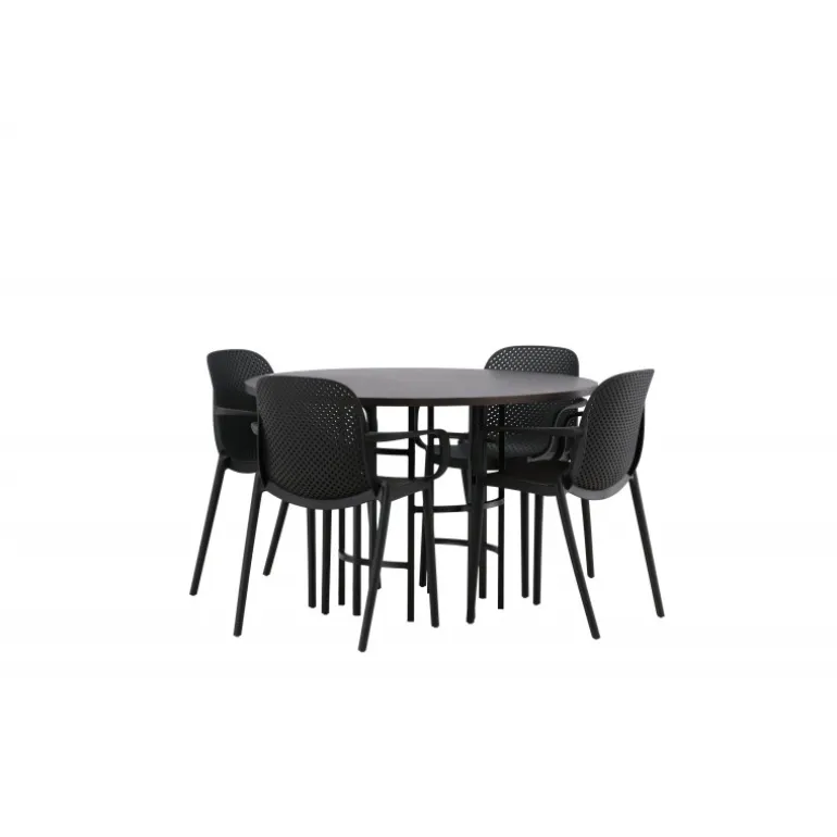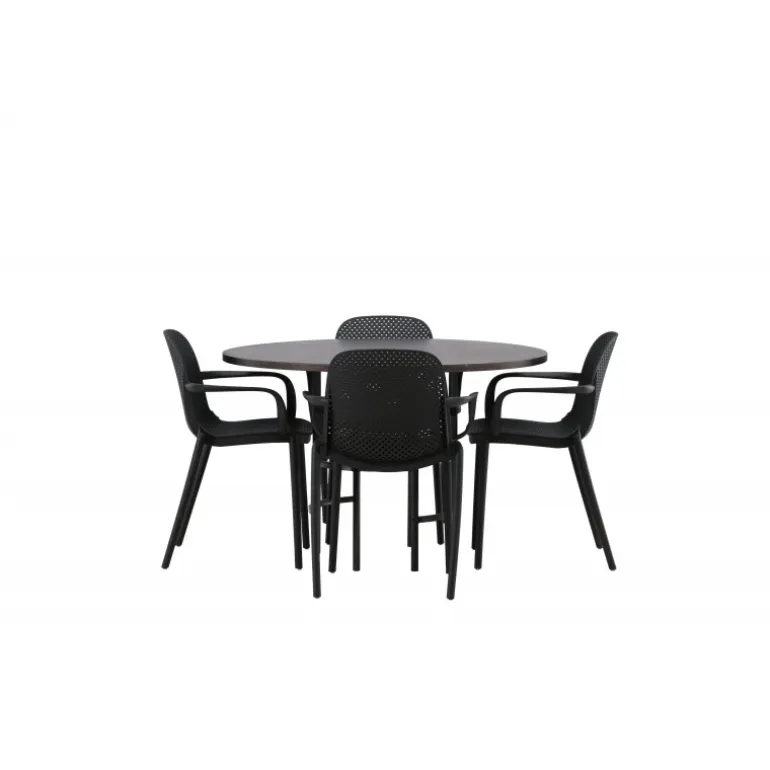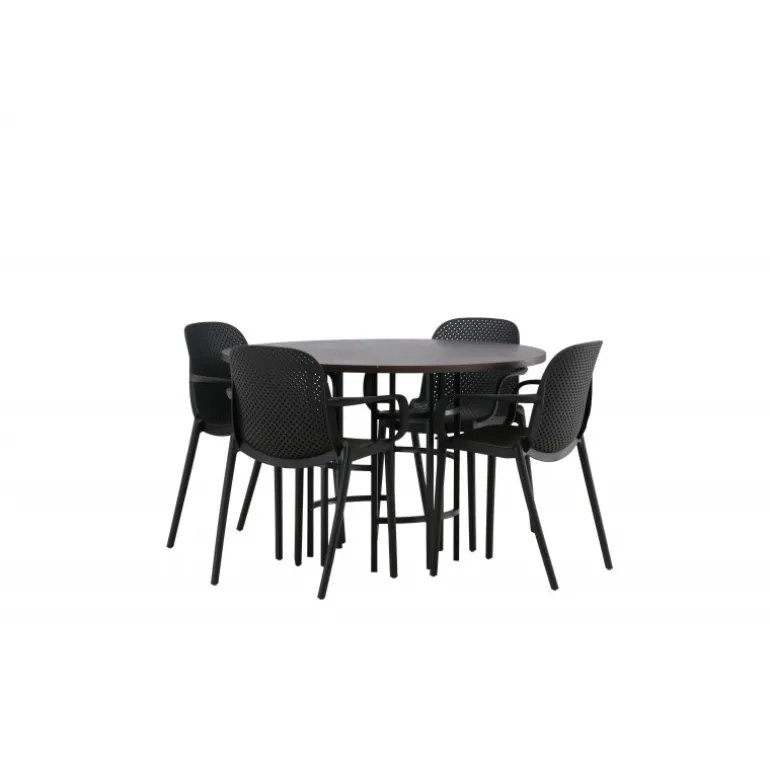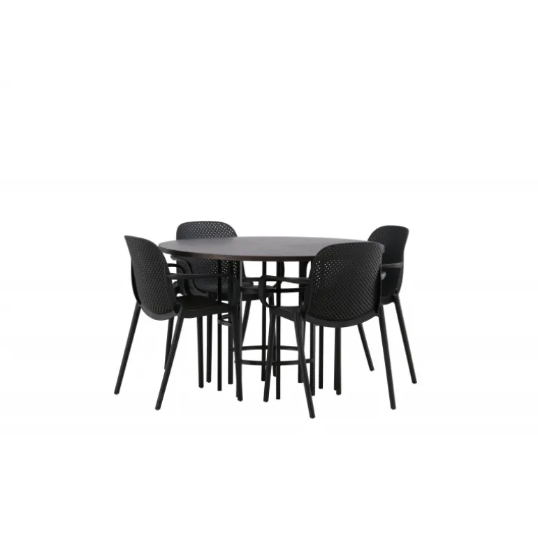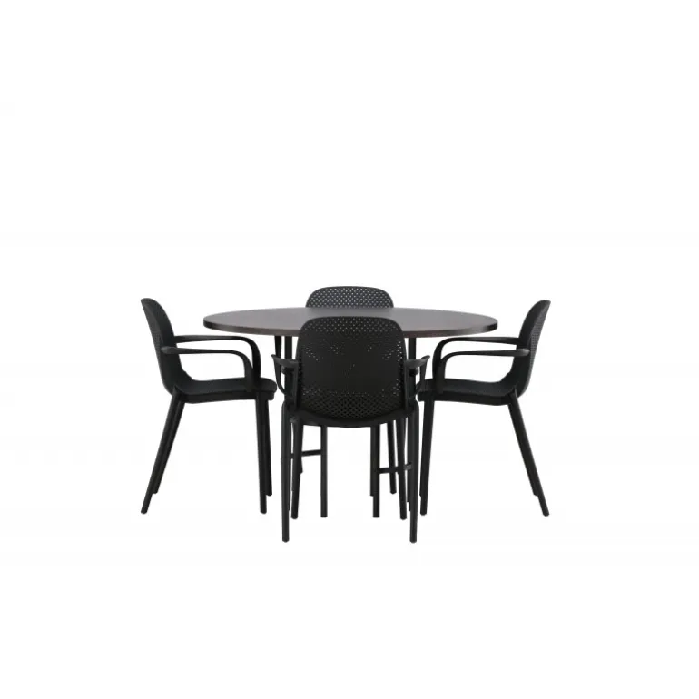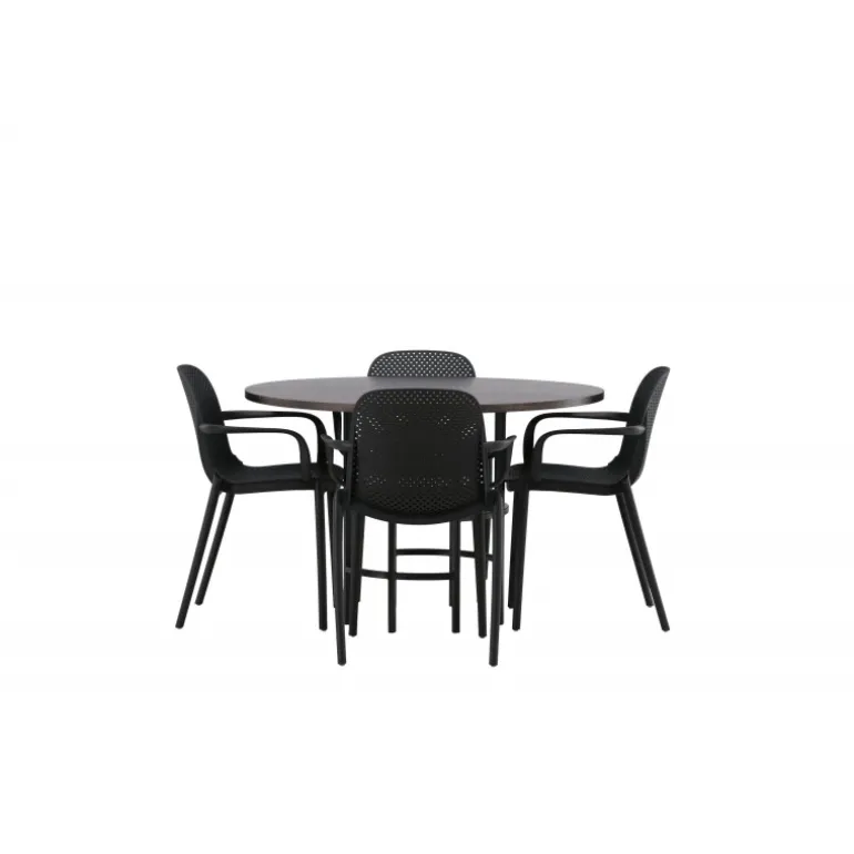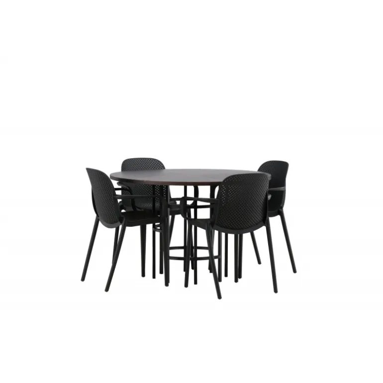 Møbler hjertet af dit hjem – dette Spisebordssæt vil imponere dine gæster med sit smukke, skandinaviske design! Dette tidløse spisebord fra Copenhagen-serien tilhører Furniture Fashion-kollektionen og har en flot brun bordplade i MDF med finer og en dekorativ cylinderformet base i sort metal. Her sammen med spisestole fra Baltimore-serien. Stolene har et industrielt design i sort plast, hvilket gør dem både stilfulde og holdbare. Skab et charmerende midtpunkt i dit hjem!
