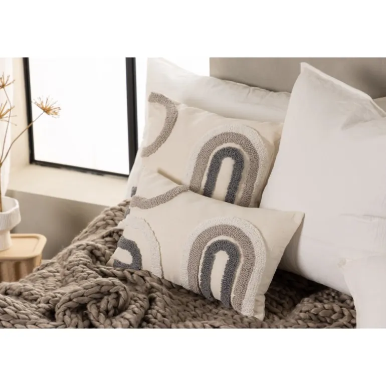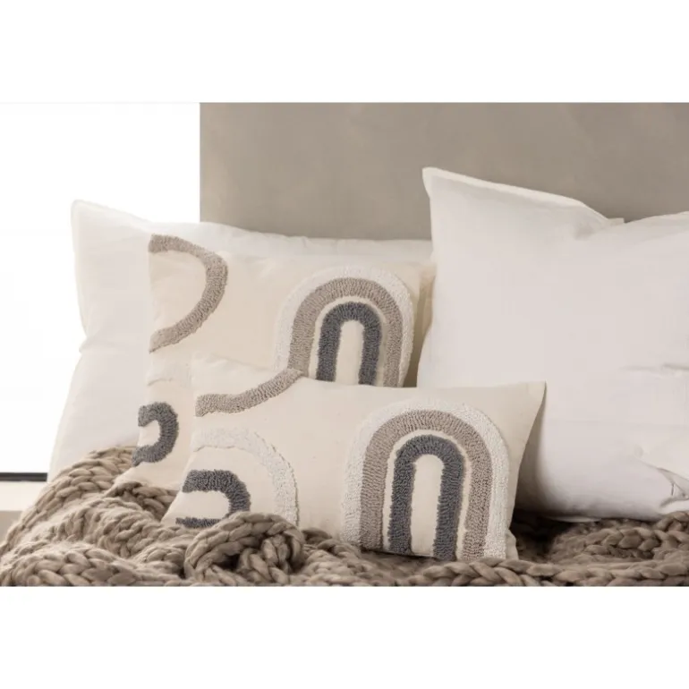 Abstrakt, smigrende og moderne – hvad mere kan du ønske dig fra et pudeovertræk? Cornelia pudeovertræk er lavet i en holdbar polyester- og bomuldsblanding, der holder over tid. Basisfarven er en cremet hvid, og det abstrakte, tuftede mønster skifter i beige og grå. Dette pudeovertræk fås i to forskellige størrelser, kvadratisk og langt smalt. Match med andre pudeovertræk i sofagruppen og skab en flot blikfang i stuen!