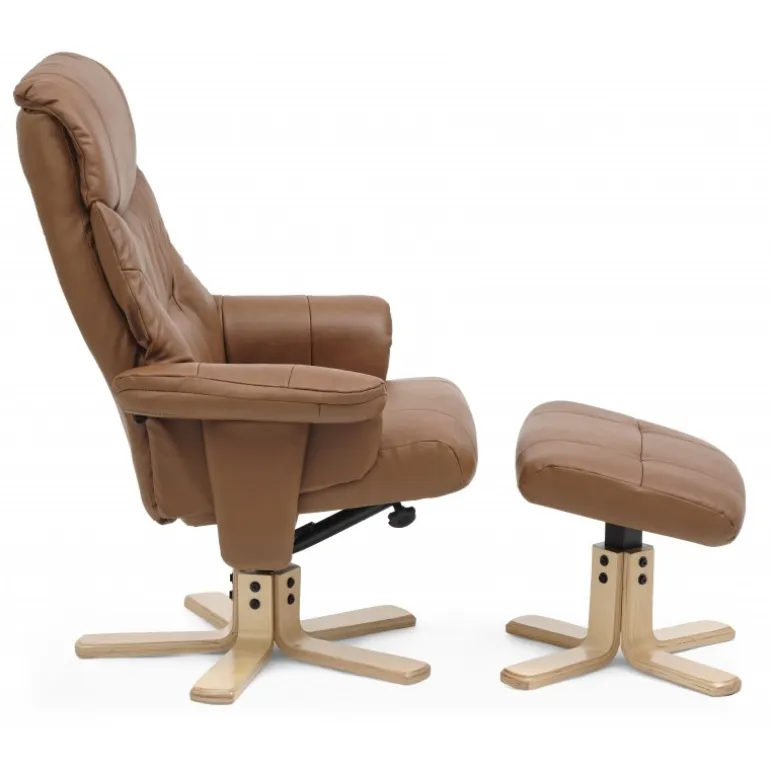 Hyggestolen inklusive fodskammel er et perfekt valg til at skabe en afslappende og stilfuld atmosfære i ethvert hjem. Stolen er designet i en smuk Cognac farve og er fremstillet af en kombination af kvalitetslæder og holdbart PVC-materiale. Denne kombination giver både en luksuriøs fornemmelse og øget holdbarhed, så du kan nyde stolen i mange år fremover.