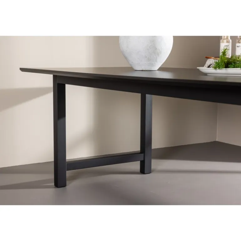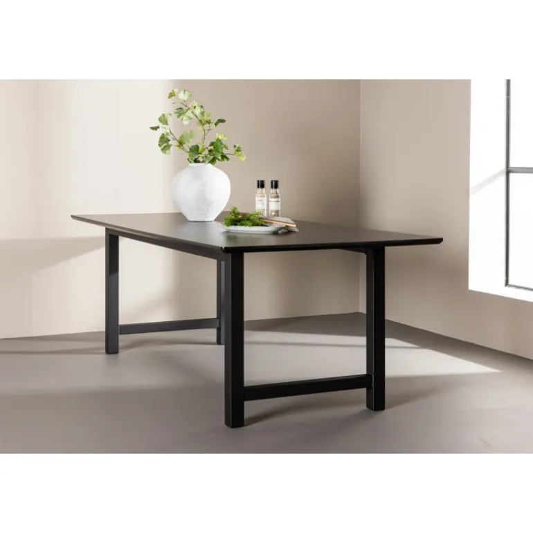 Count, vores rektangulære spisebord, imponerer med sin generøse størrelse og pompøse design. Spisebordpladen er lavet af MDF og har en stilfuld metalunderstel. Den konsekvente sorte farve skaber en luksuriøs og statelig følelse i dit hjem. Match med valgfri spisebordsstole for at tilføje et personligt præg på interiøret og nyde en trendy blikfang! Plejeanvisning: MDF-plader, der er malet eller lakeret, er følsomme over for ridser og skader. Vær derfor forsigtig med pladerne for at undgå dette. Overflader malet med lak med farvepigment eller maling har en pigmentering, der giver en ikke-dækkende gennemsigtig overflade. Sørg for at fugte og fjerne pletter så hurtigt som muligt med en godt opvredet rengøringsklud og sæbeopløsning.