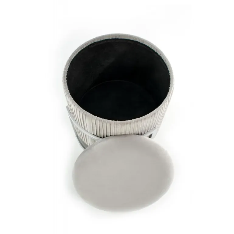 Oplev komfort og funktionalitet med vores CRICKET puf i lysegrå. Denne puf er ikke kun et stilfuldt møbel, men også en praktisk opbevaringsløsning til dit hjem. Med dimensionerne fi40/46 cm passer den perfekt ind i enhver stue, soveværelse eller kontor. Puf’en er fremstillet af blødt velourstof og robust pulverlakeret stål, hvilket sikrer både komfort og holdbarhed.