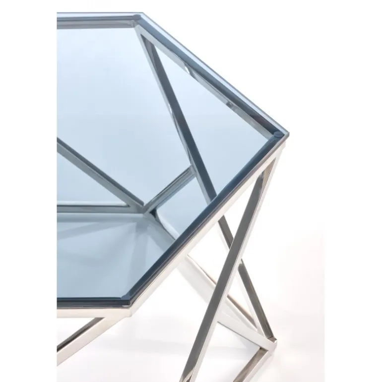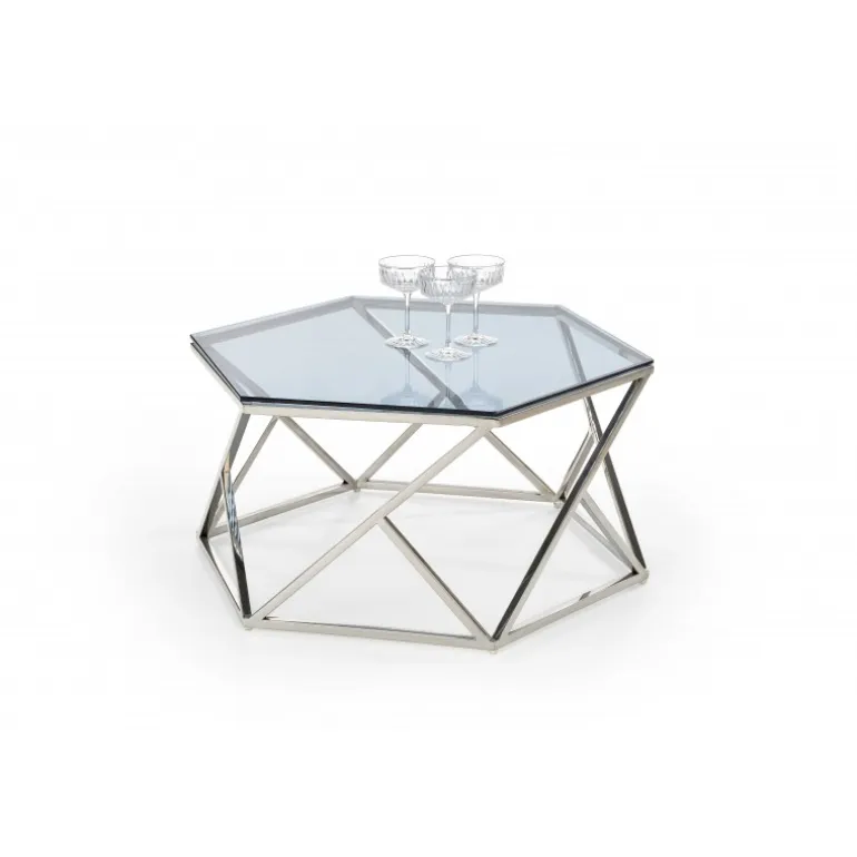Oplev elegance og funktionalitet med CRISTINA sofabord i røgfarvet glas og rustfrit stål. Dette sofabord er designet til at forbedre din stues æstetik og tilbyder både holdbarhed og stil. Med dimensioner på 80/70/30 cm passer det perfekt til enhver moderne bolig. Det røgfarvede glas giver et sofistikeret udseende, mens den rustfri stålramme sikrer stabilitet og langvarig brug.
