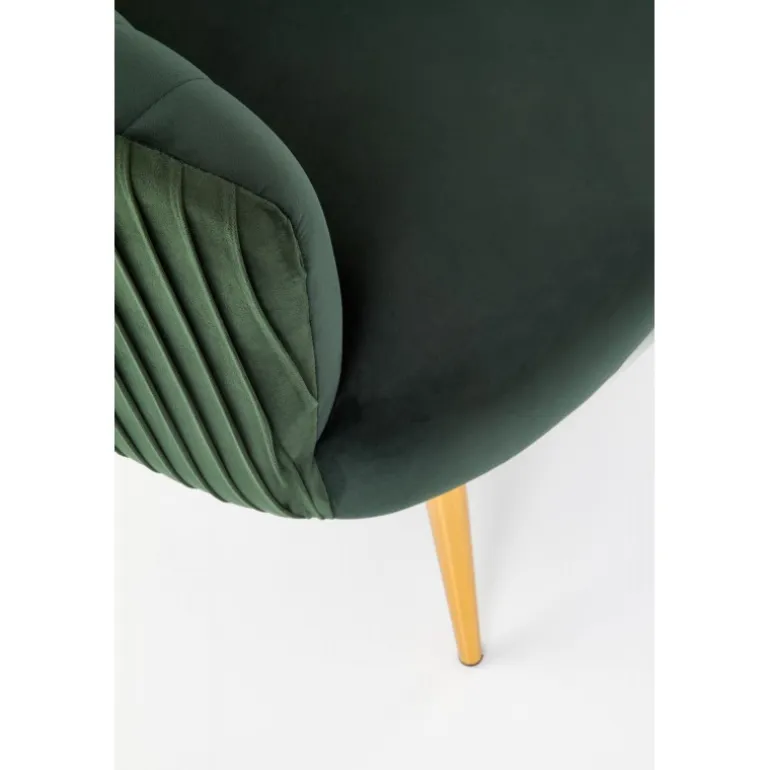 - Elegant Design: Stilfuld mørkegrøn polstring med guld ben for et luksuriøst look.