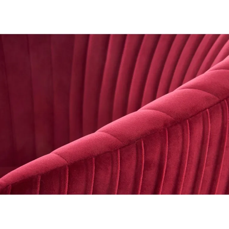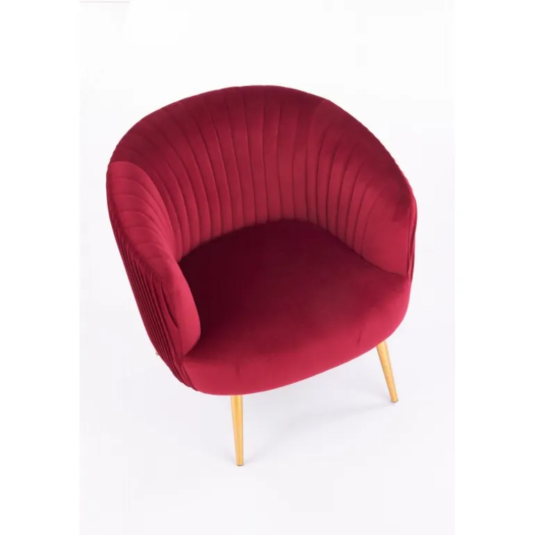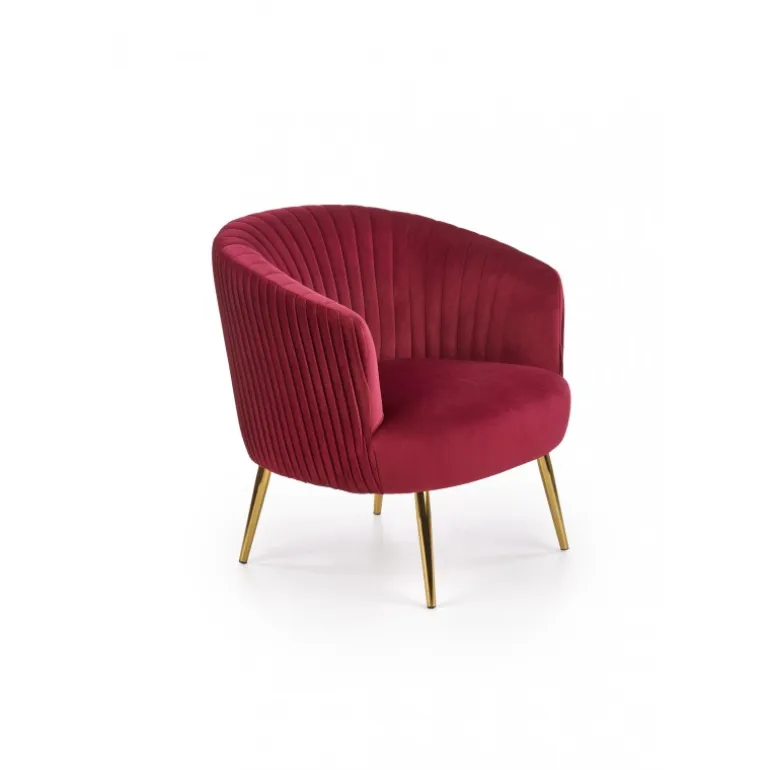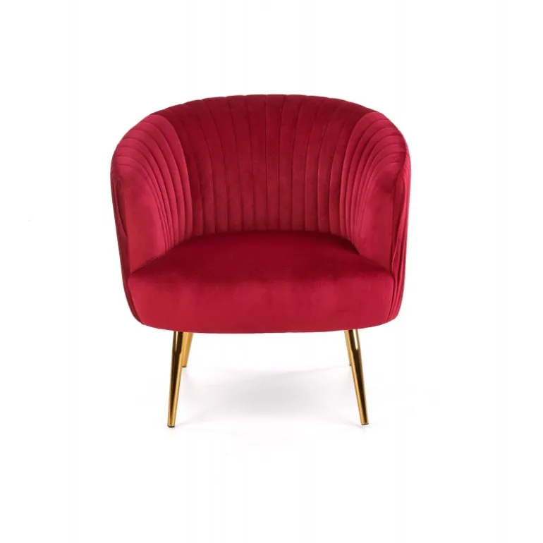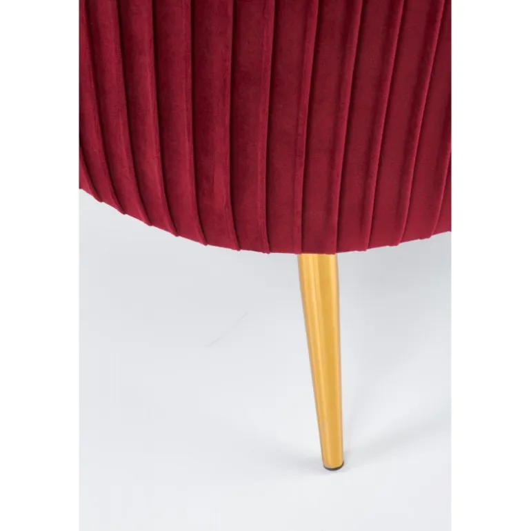 - Elegant design: Mørkerød polstring med guldfarvede ben.